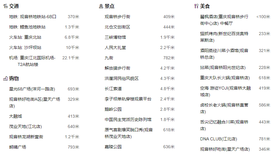 麗枫酒店(重庆观音桥步行街中心店)位于重庆市江北区东环路亚朵国际大厦,毗邻西部商业街——观音桥步行街,距观音桥3号线地铁站(1出口)约543米,乘坐地铁约15分钟可达到李子坝轻轨穿楼网红打卡点;乘坐地铁约30分钟可达洪崖洞、解放碑、磁器口等著名旅游景点。