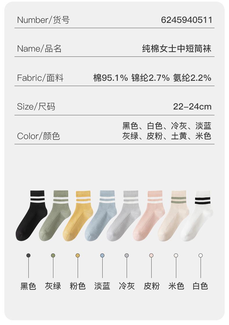 爱帝中筒女袜透气棉刺绣爱心LOGO组合装