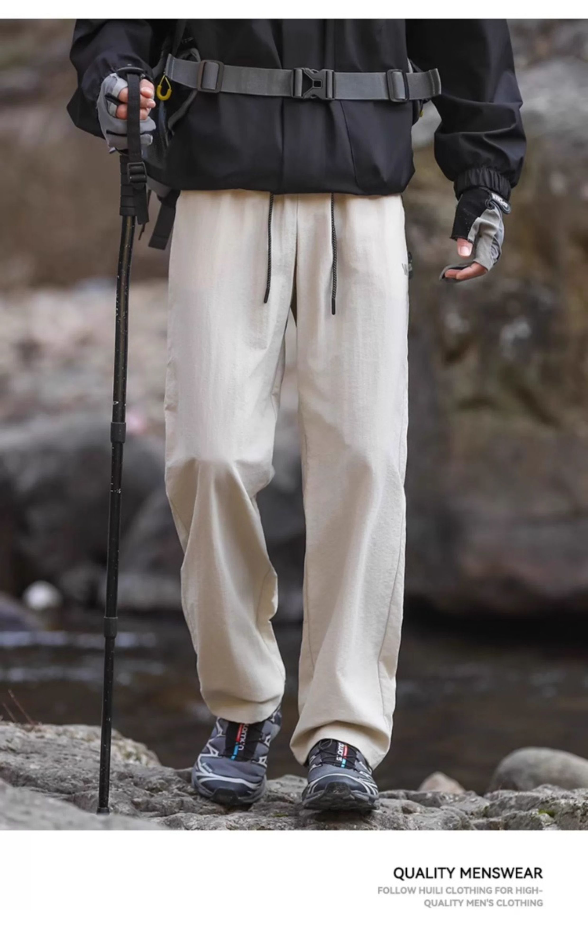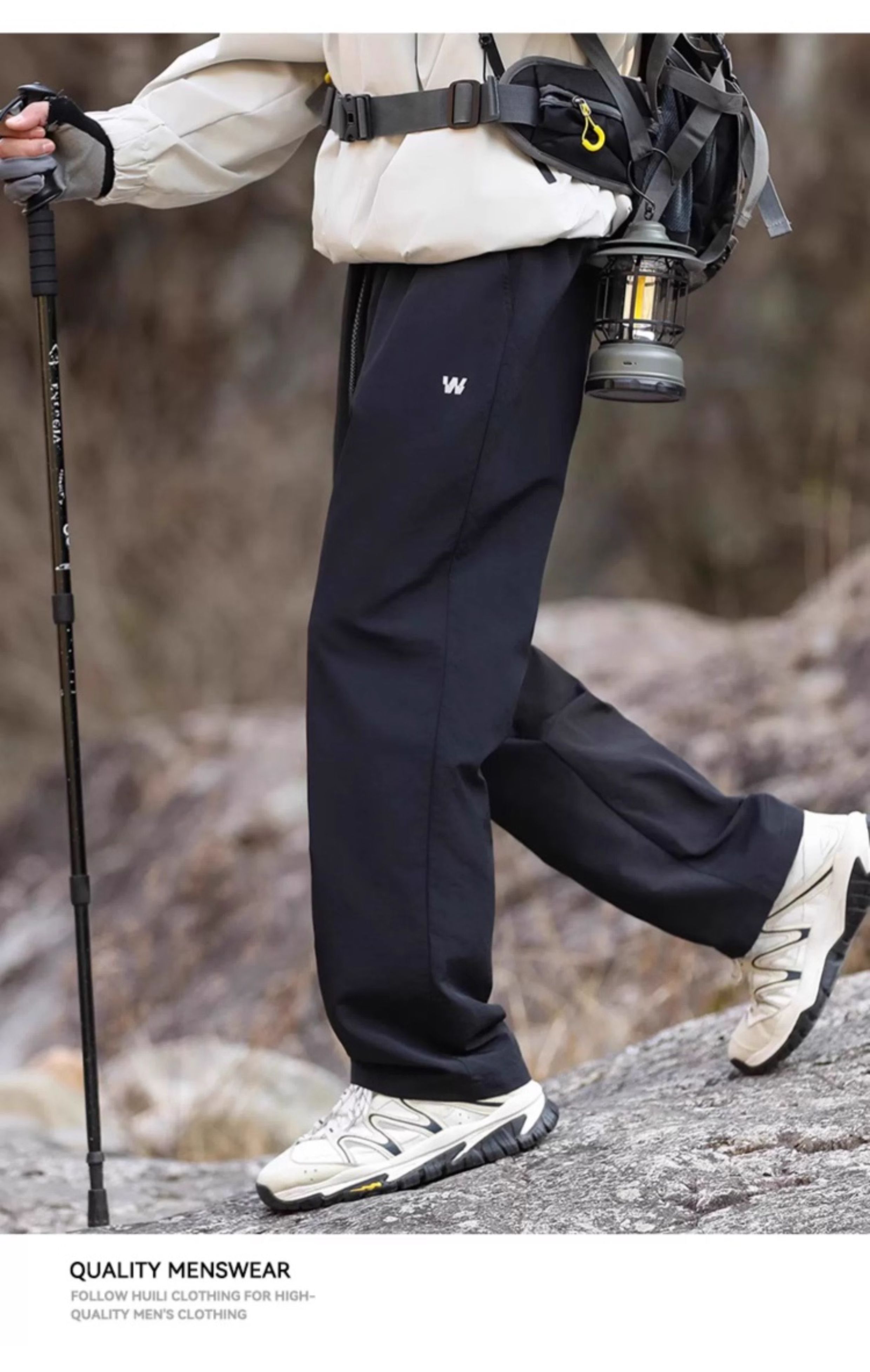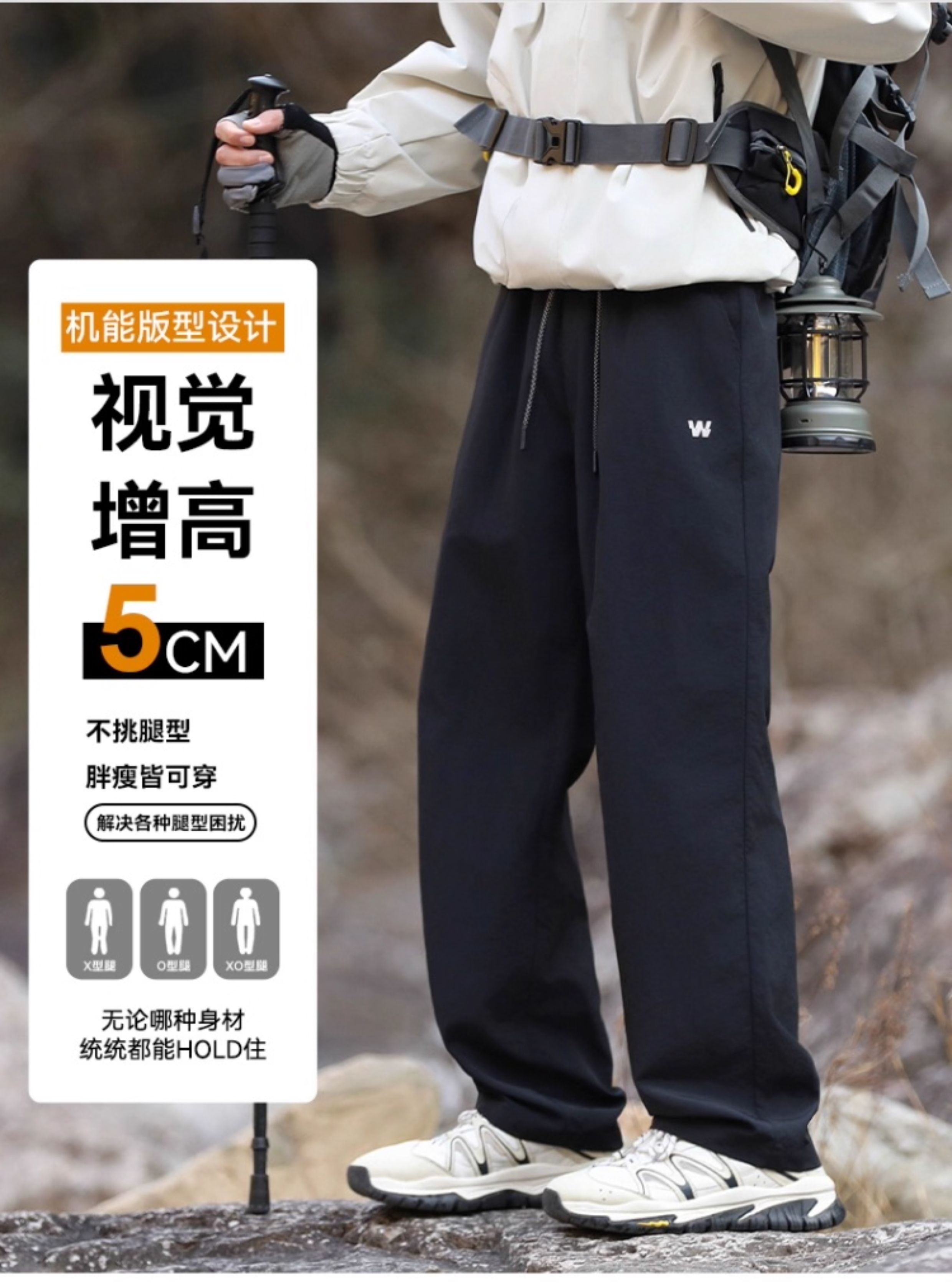 回力冲锋休闲裤子男2025新款春秋户外耐磨防风软壳登山工装裤