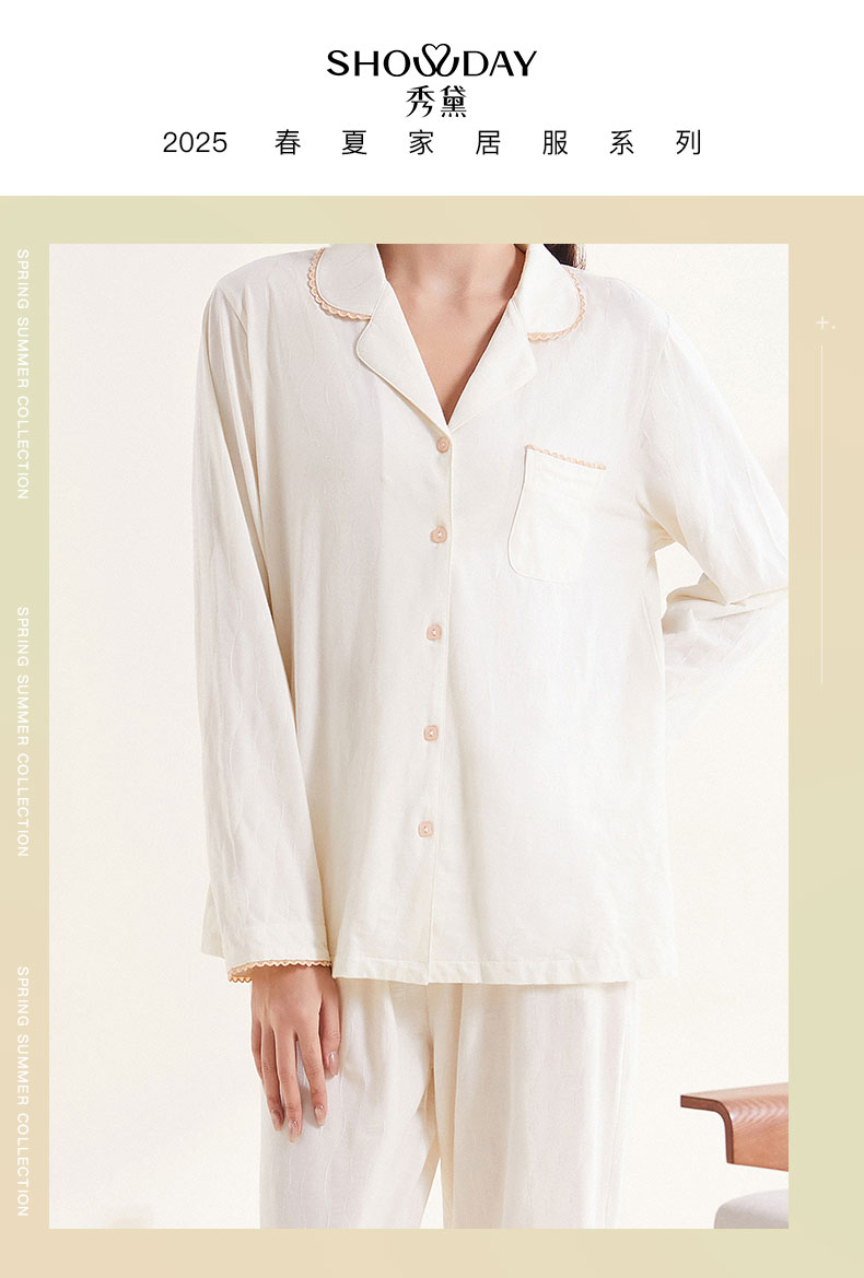 【第二件 0 元| 满2件 5 折】【秀黛】女翻领提花长袖套装女家居服睡衣S1551022T【门店同款】