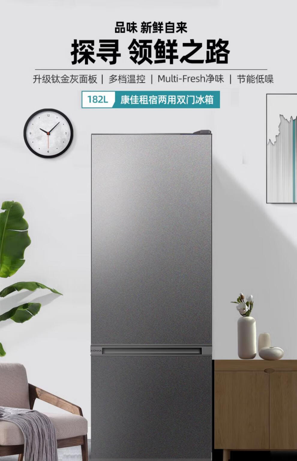 康佳冰箱182升双开门净味家用电冰箱两门租房两用小冰箱_BCD-182GQ2SU_182L钛金灰