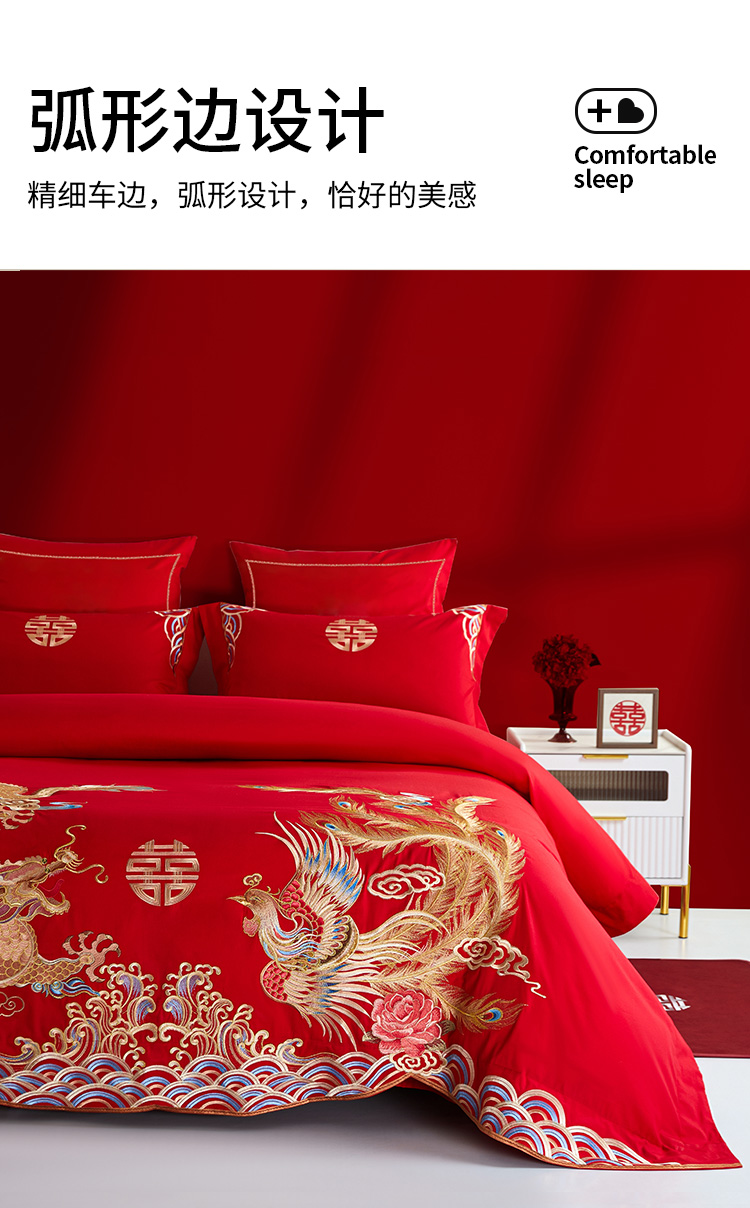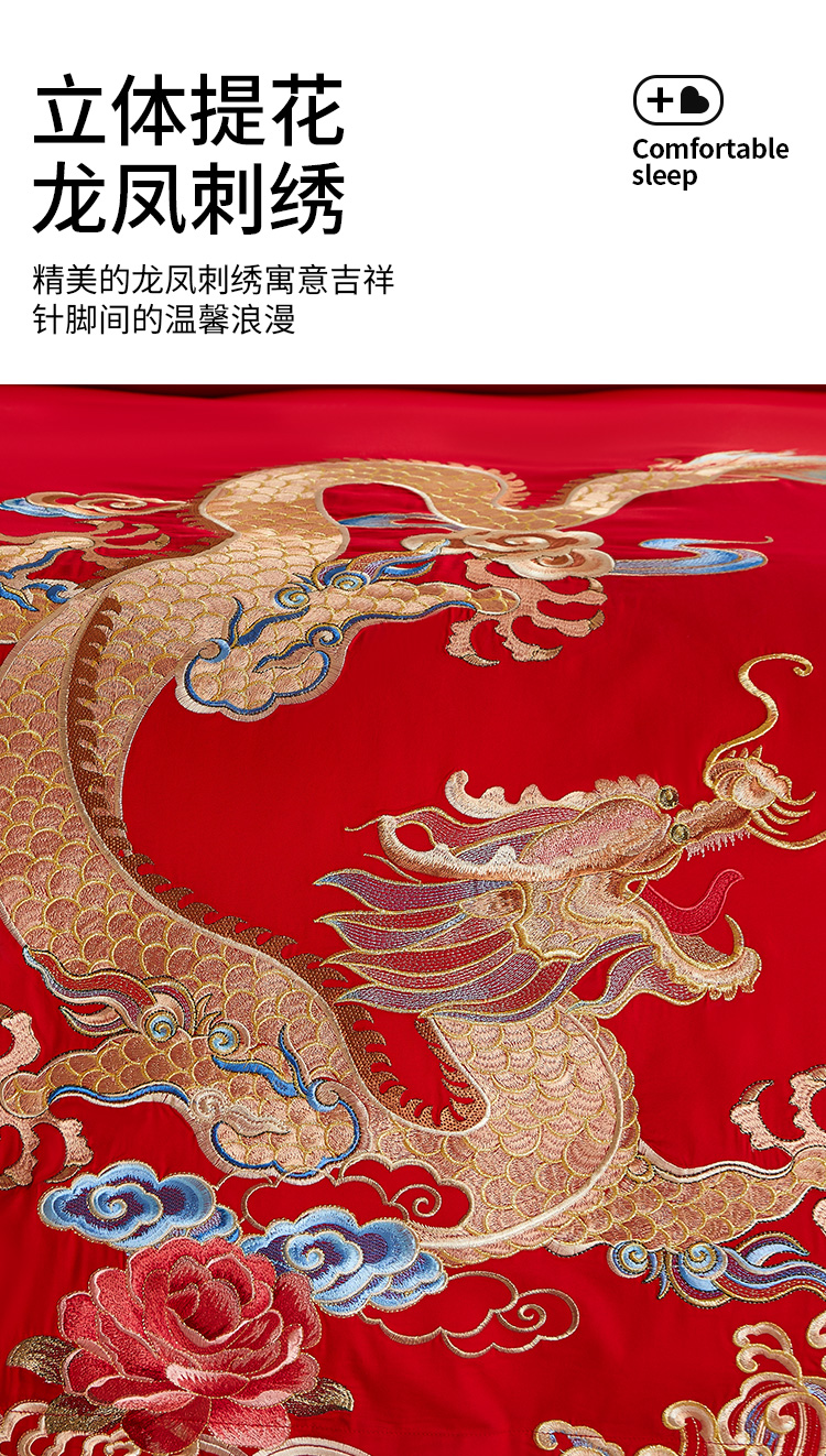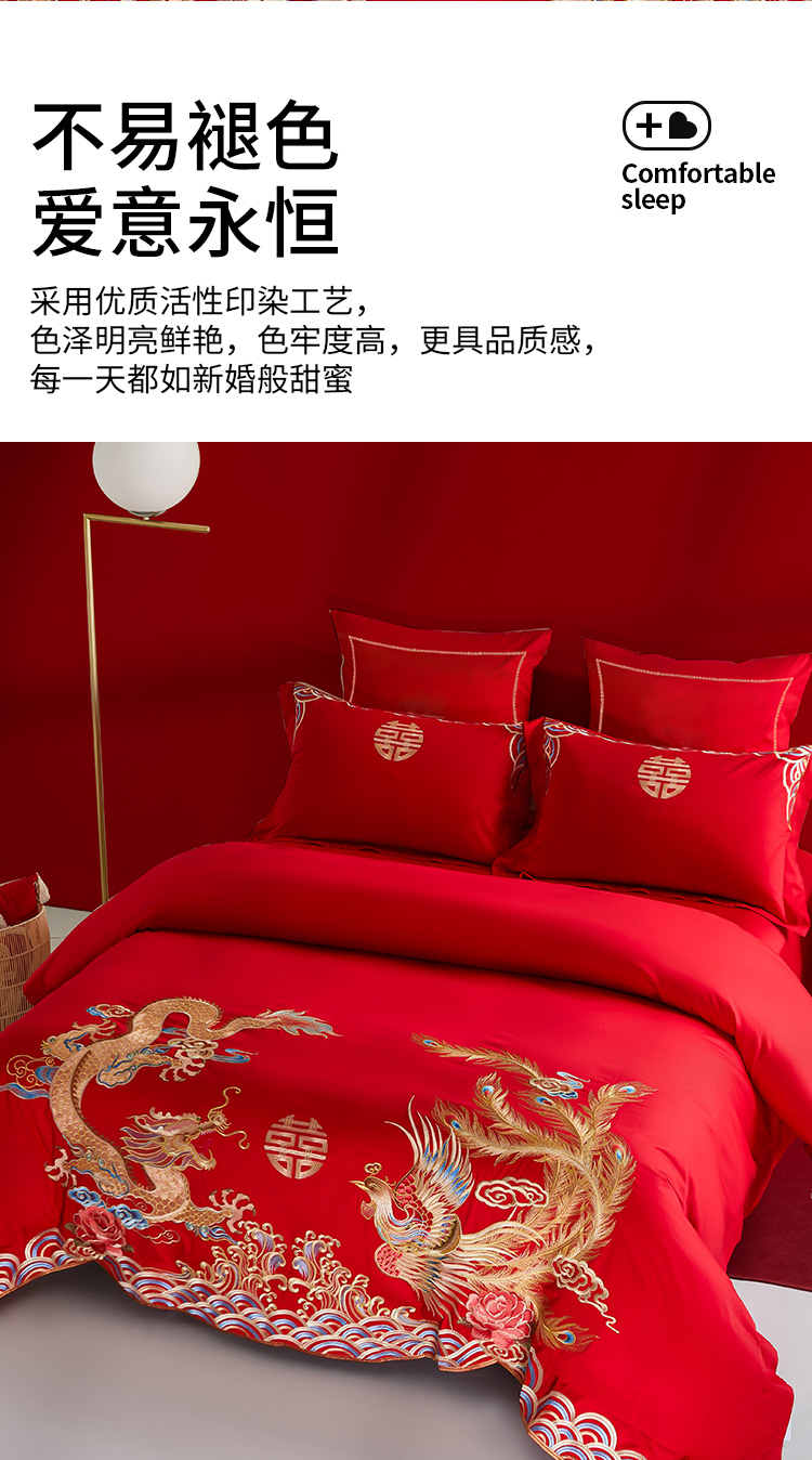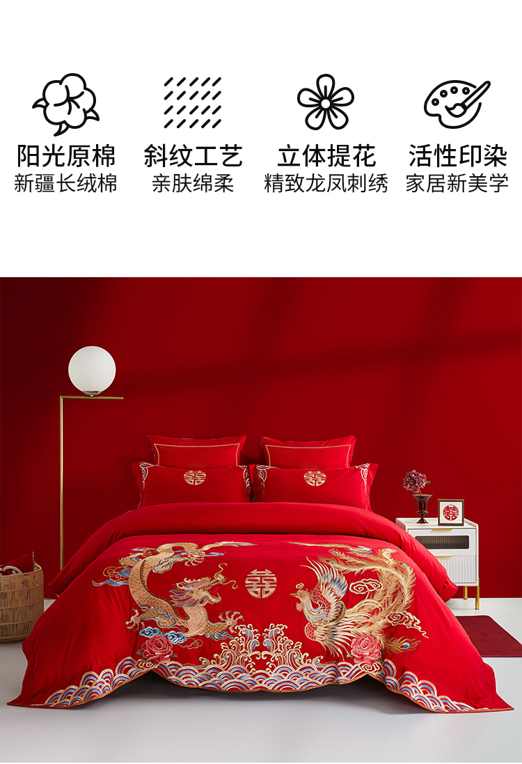 佳丽斯全棉婚庆套件/龙凤呈祥/大红色婚嫁高级感喜被婚床