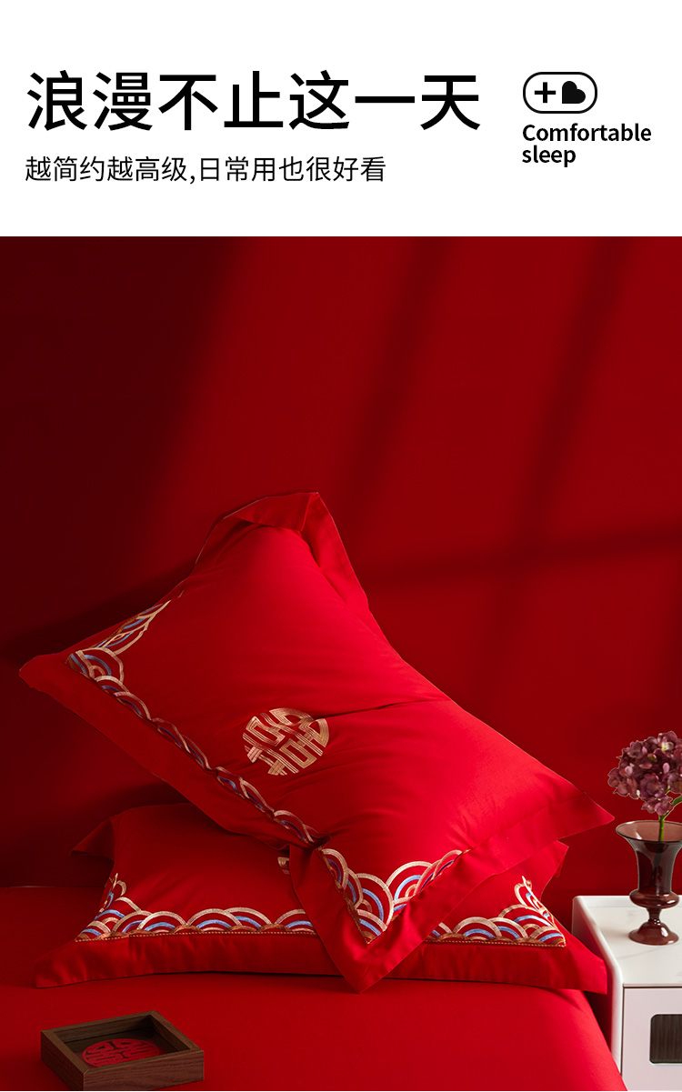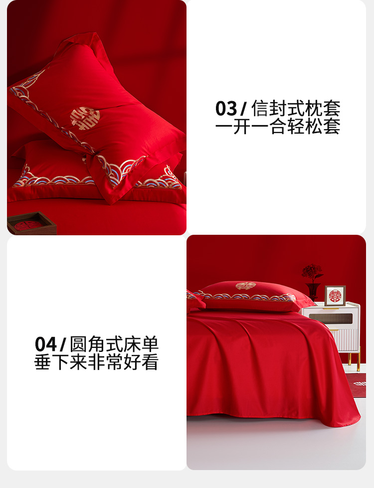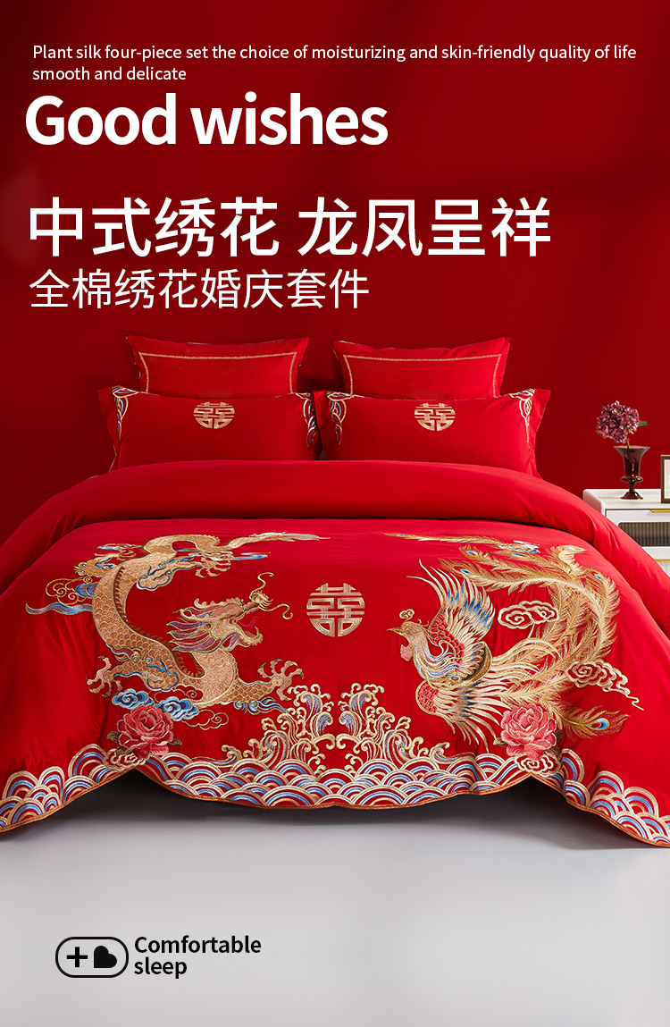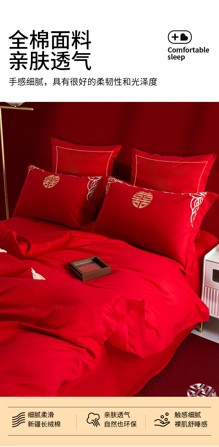 佳丽斯全棉婚庆套件/龙凤呈祥/大红色婚嫁高级感喜被婚床