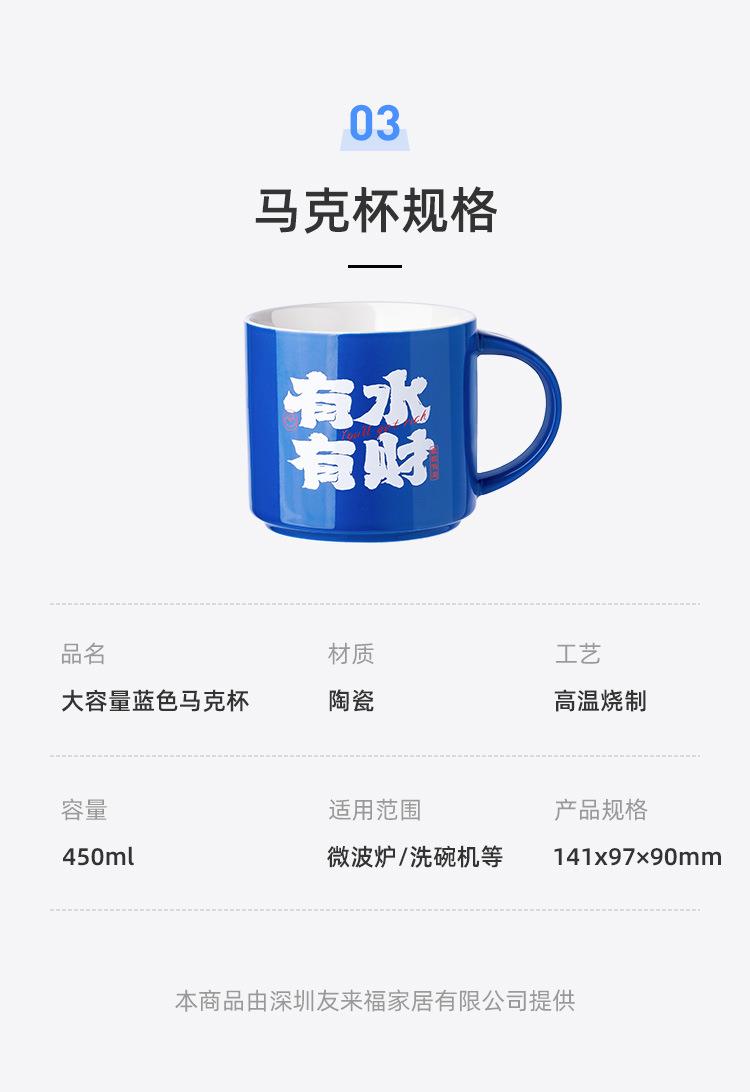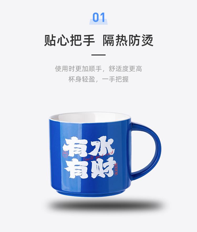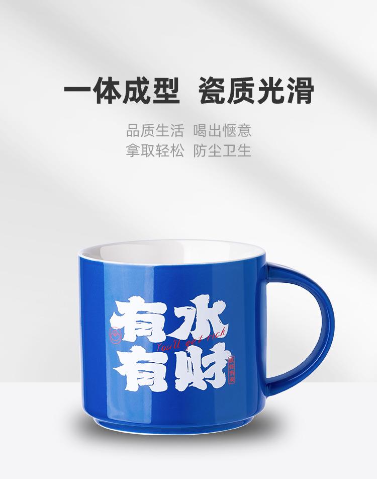 创意陶瓷杯马克杯有水有财家用大容量早餐杯商务办公室咖啡水杯子