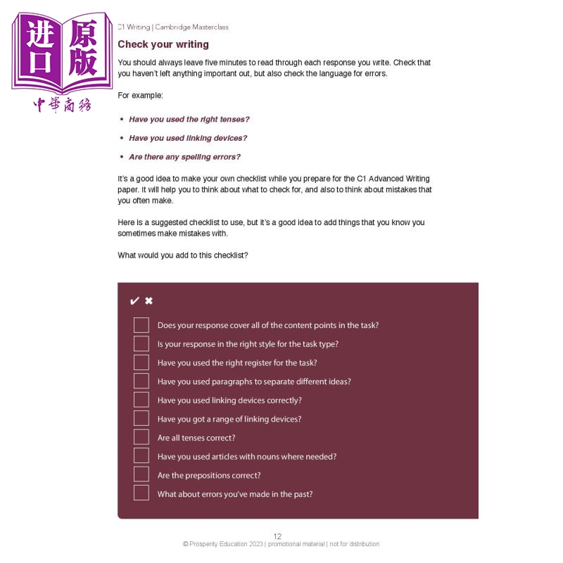 【中商原版】C1 Writing Cambridge Masterclass practice tests 写作提升 剑桥CAE考试 C1等级带练习测试剑桥大师课程 2023