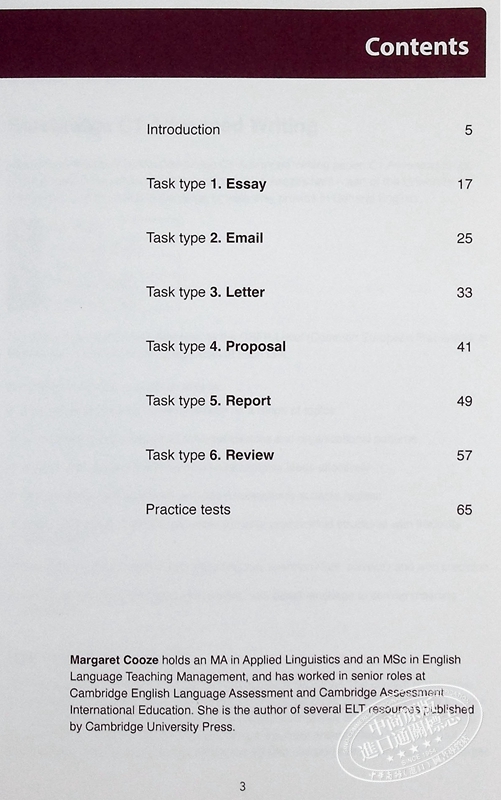 玛格丽特·库兹 (Margaret Cooze)拥有应用语言学硕士学位和英语教学管理硕士学位,并曾在剑桥英语语言评估和剑桥大学评估国际教育担任高级职务。她是剑桥大学出版社与评估出版的多本英语教学资源的作者。
