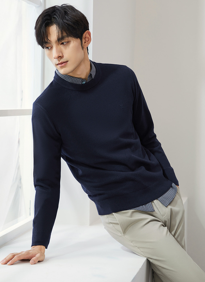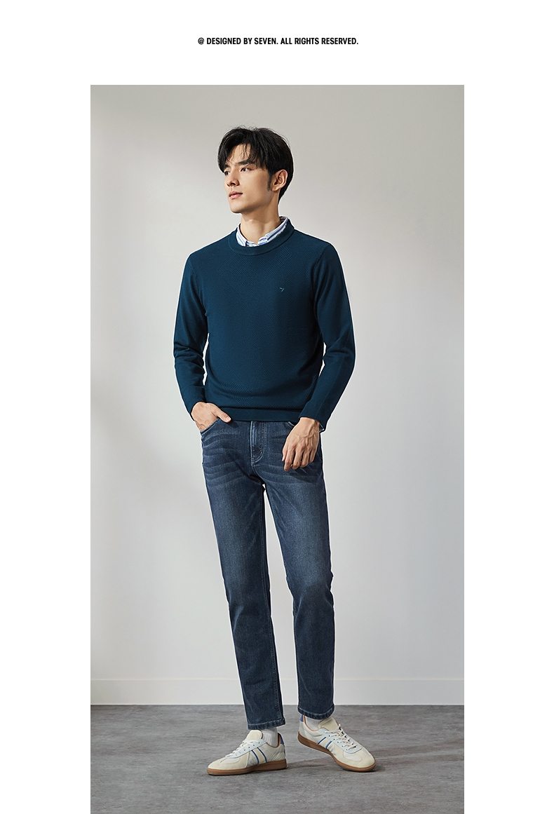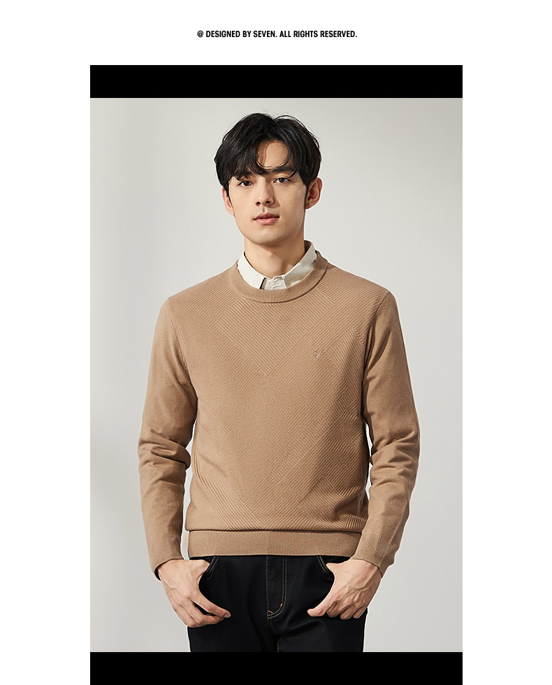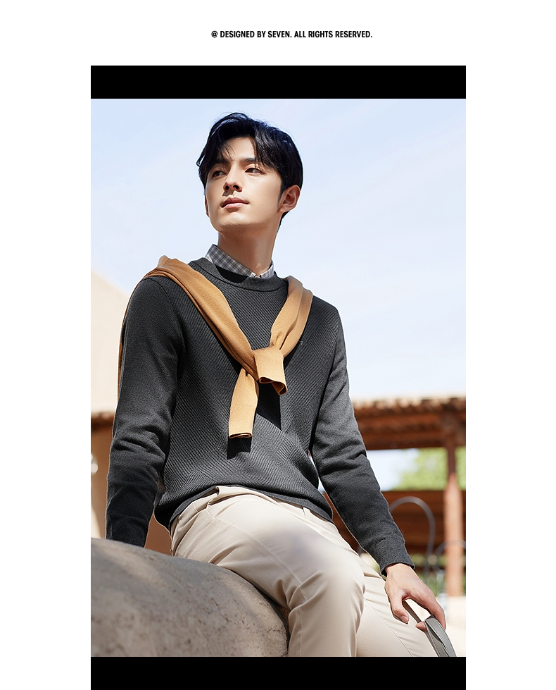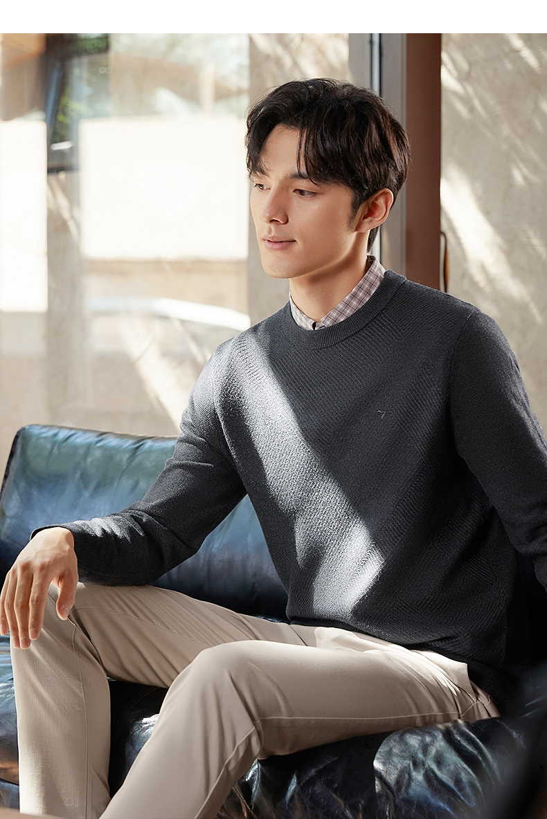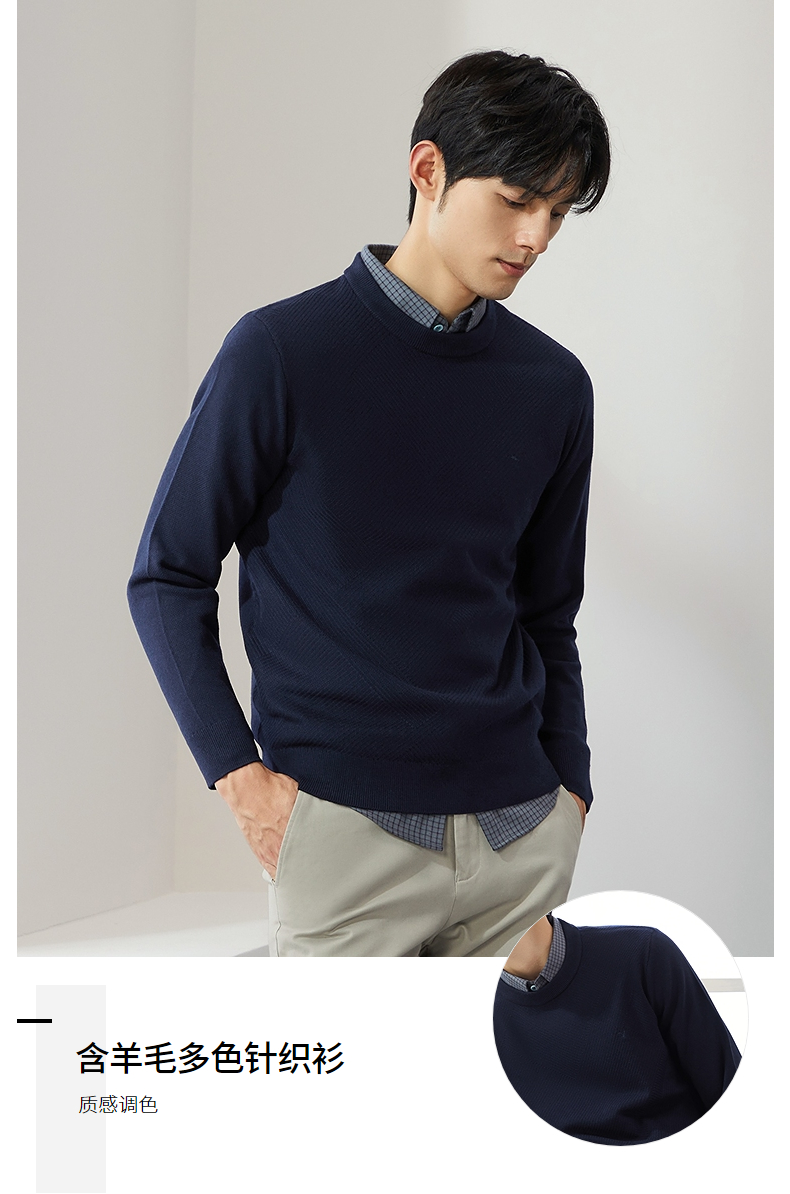 柒牌毛衣男2024秋冬新款时尚休闲中青年含羊毛圆领保暖上衣针织衫 127Y70370