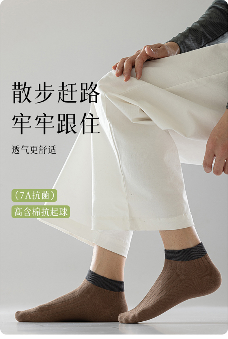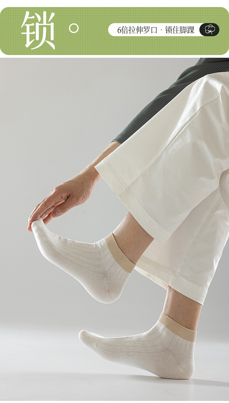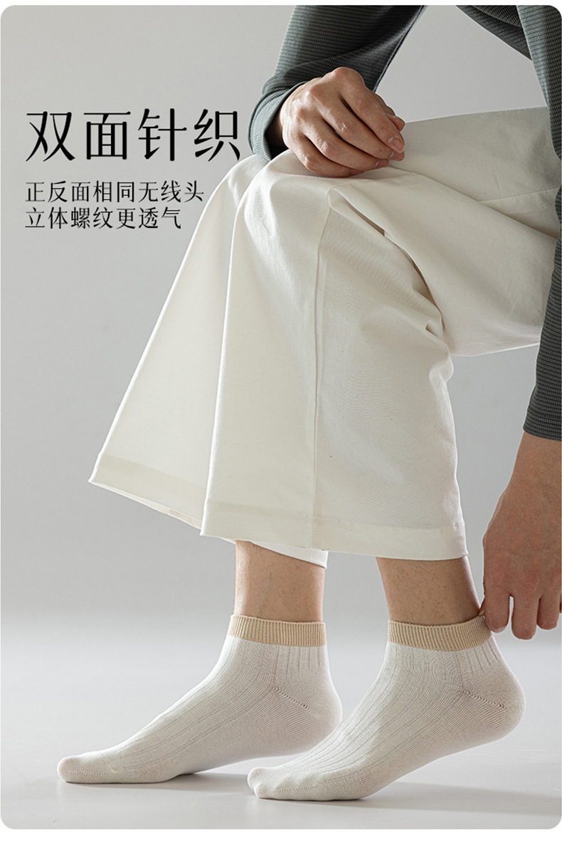 【脚腕粗杠短袜】男士短袜良品透气纯色袜子四季运动休闲双针抗菌防臭吸汗