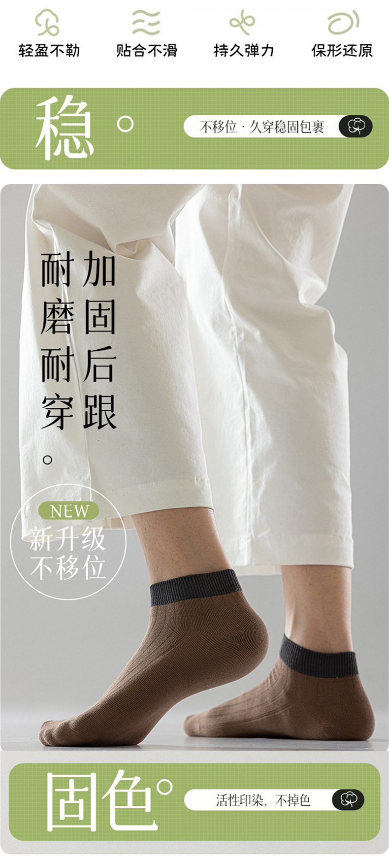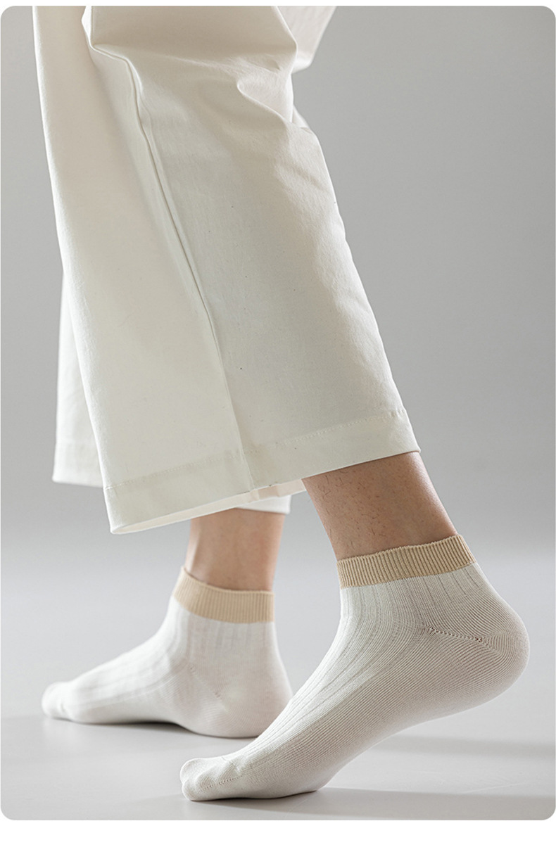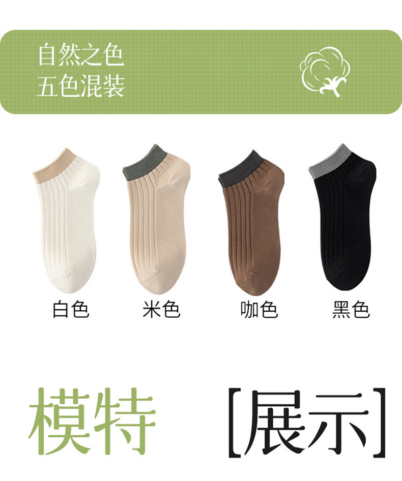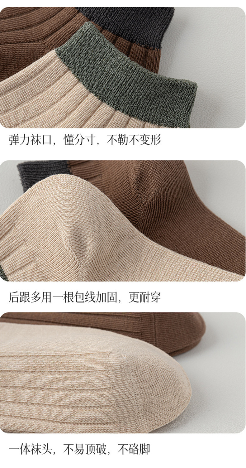 【脚腕粗杠短袜】男士短袜良品透气纯色袜子四季运动休闲双针抗菌防臭吸汗