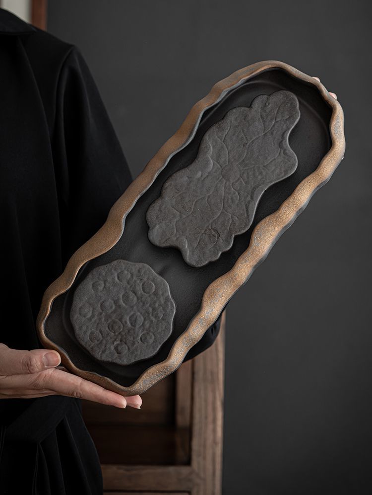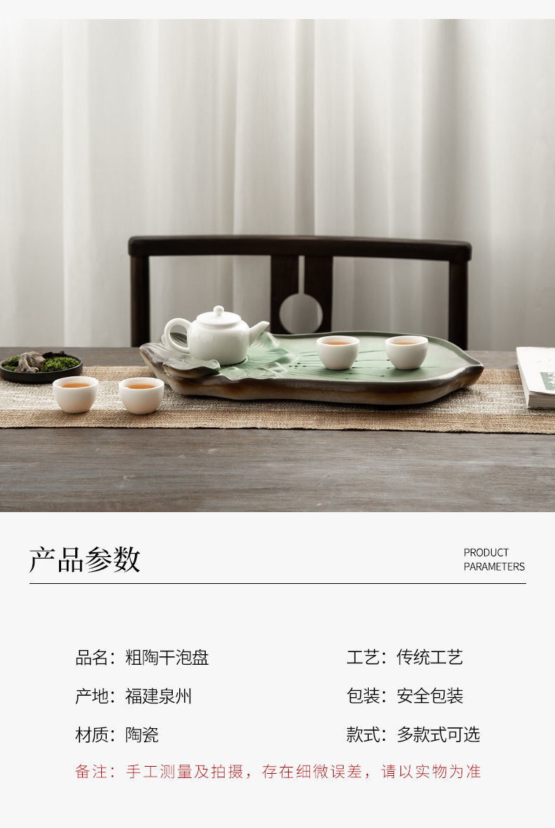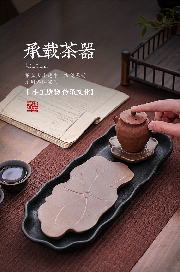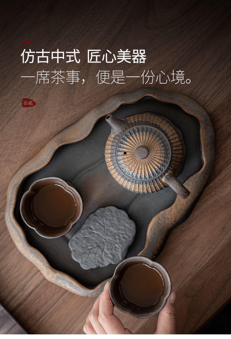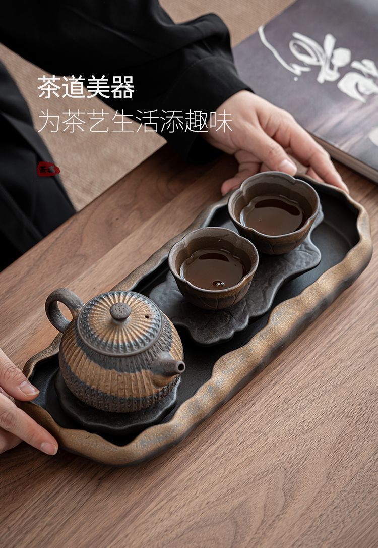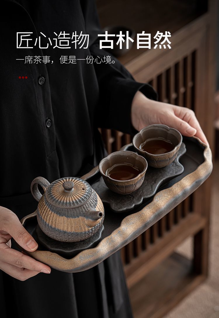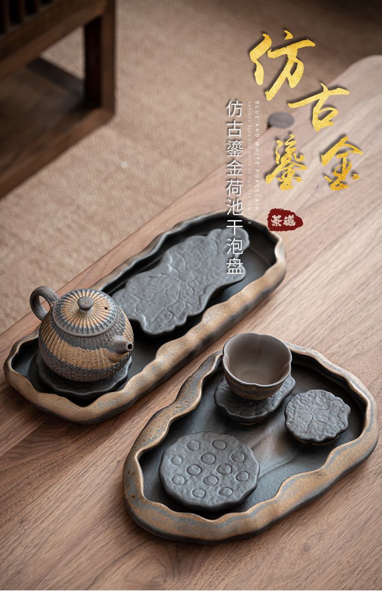 鎏金粗陶茶盘禅意干泡茶台小号双人用茶海复古风茶具托盘家用