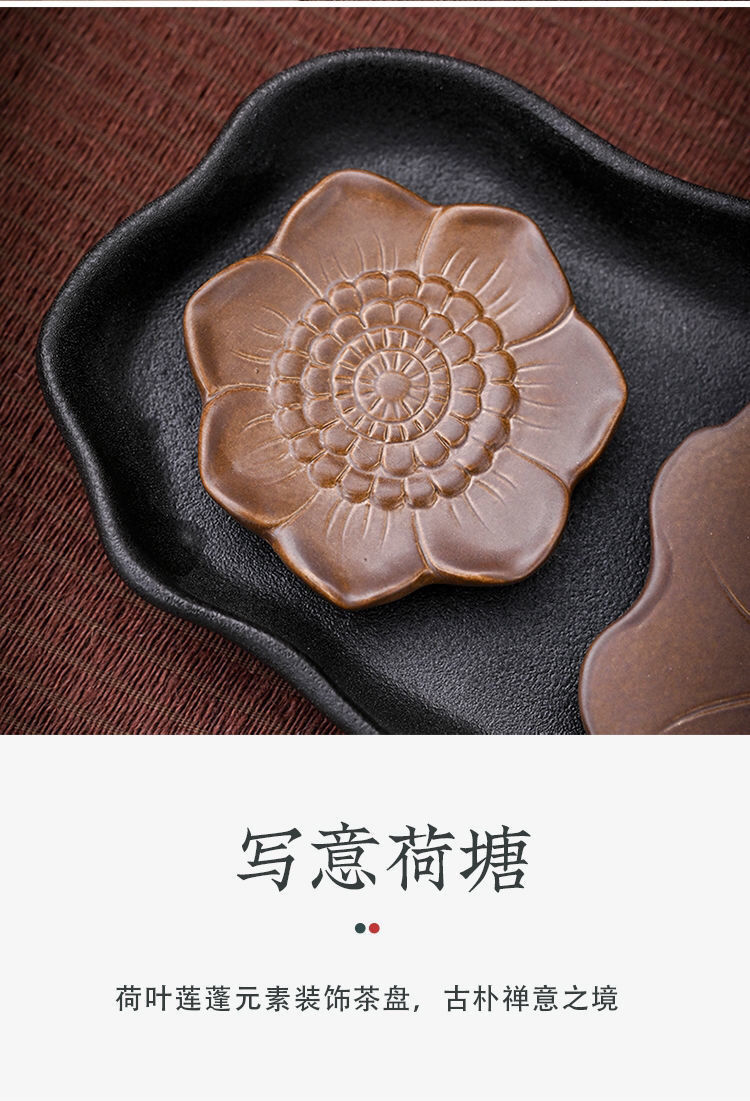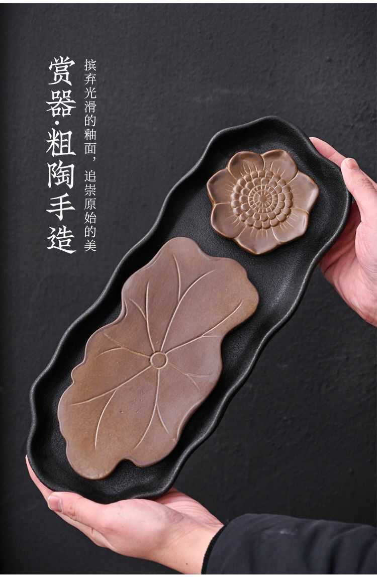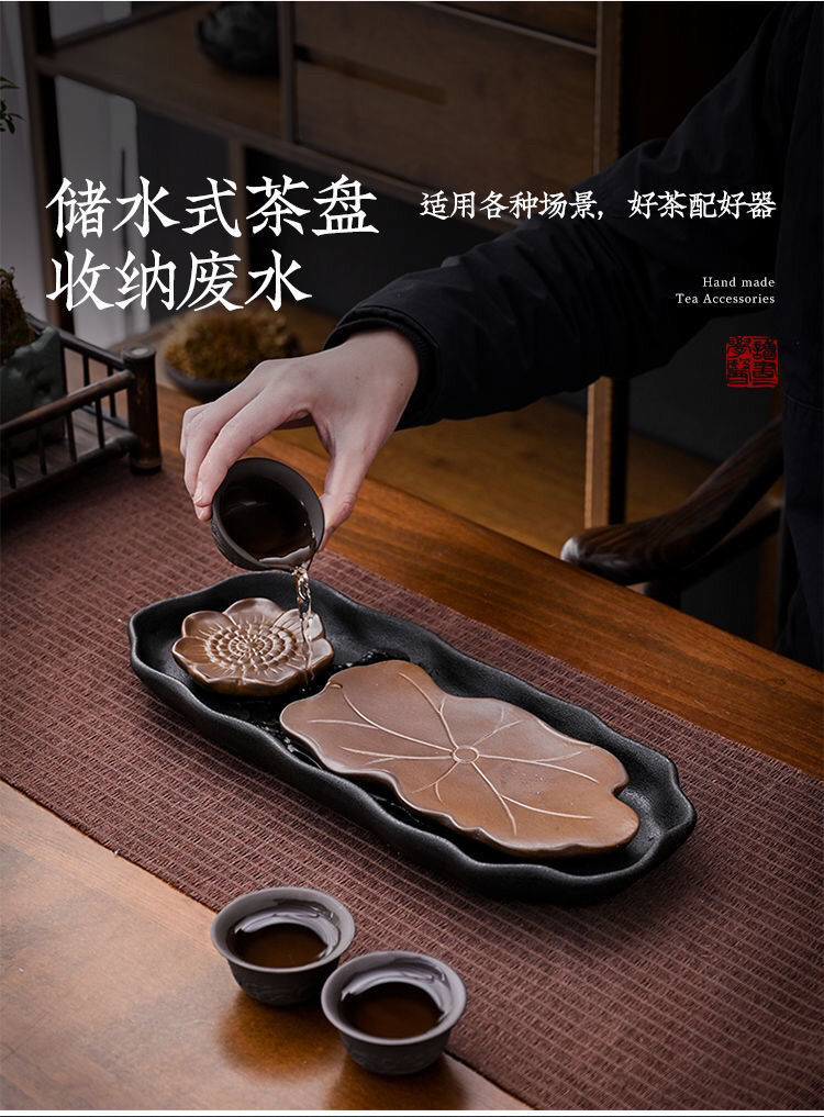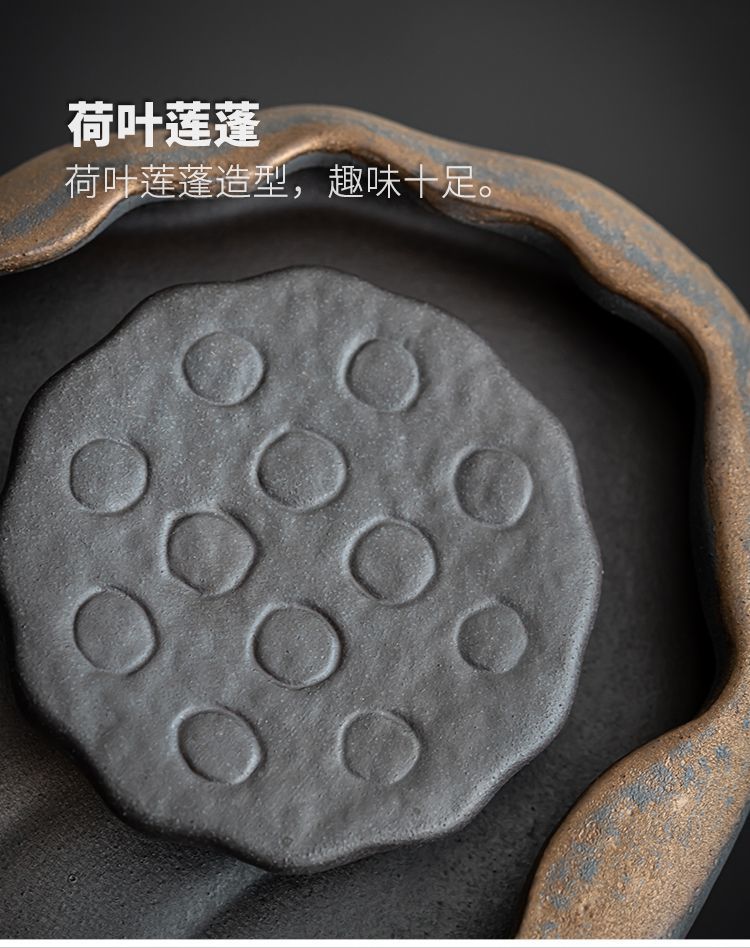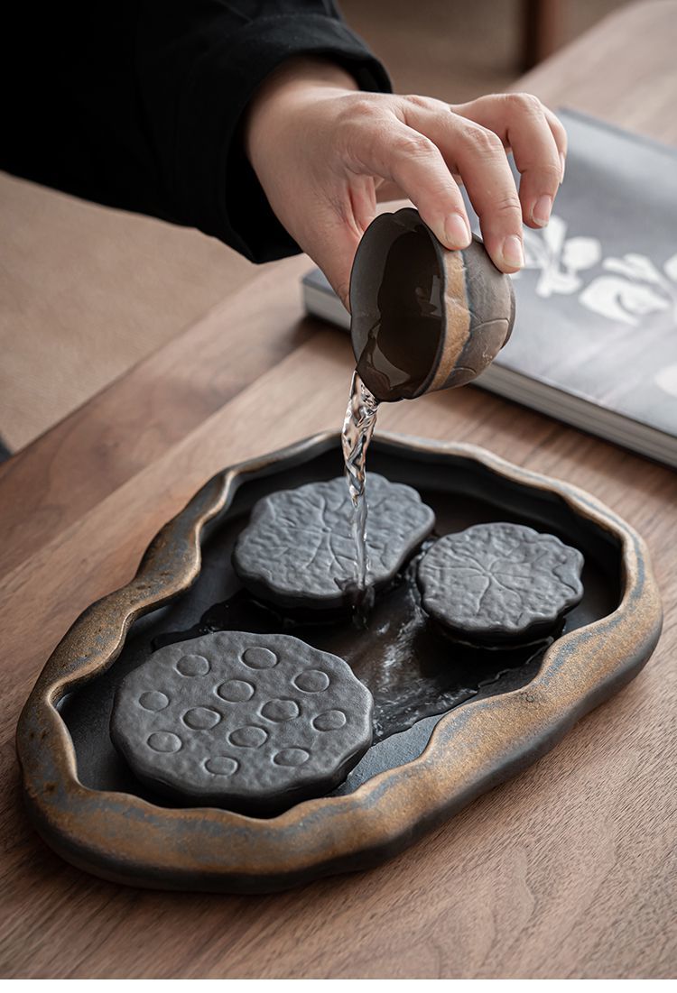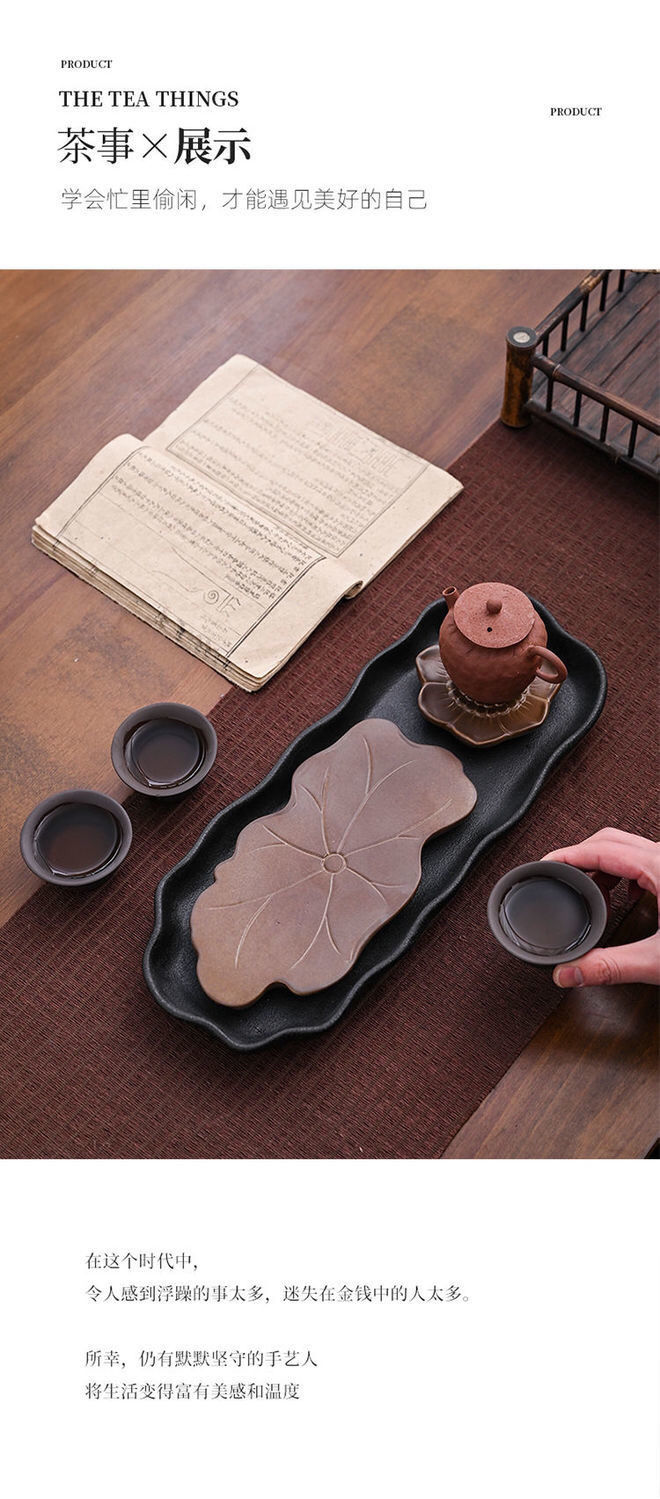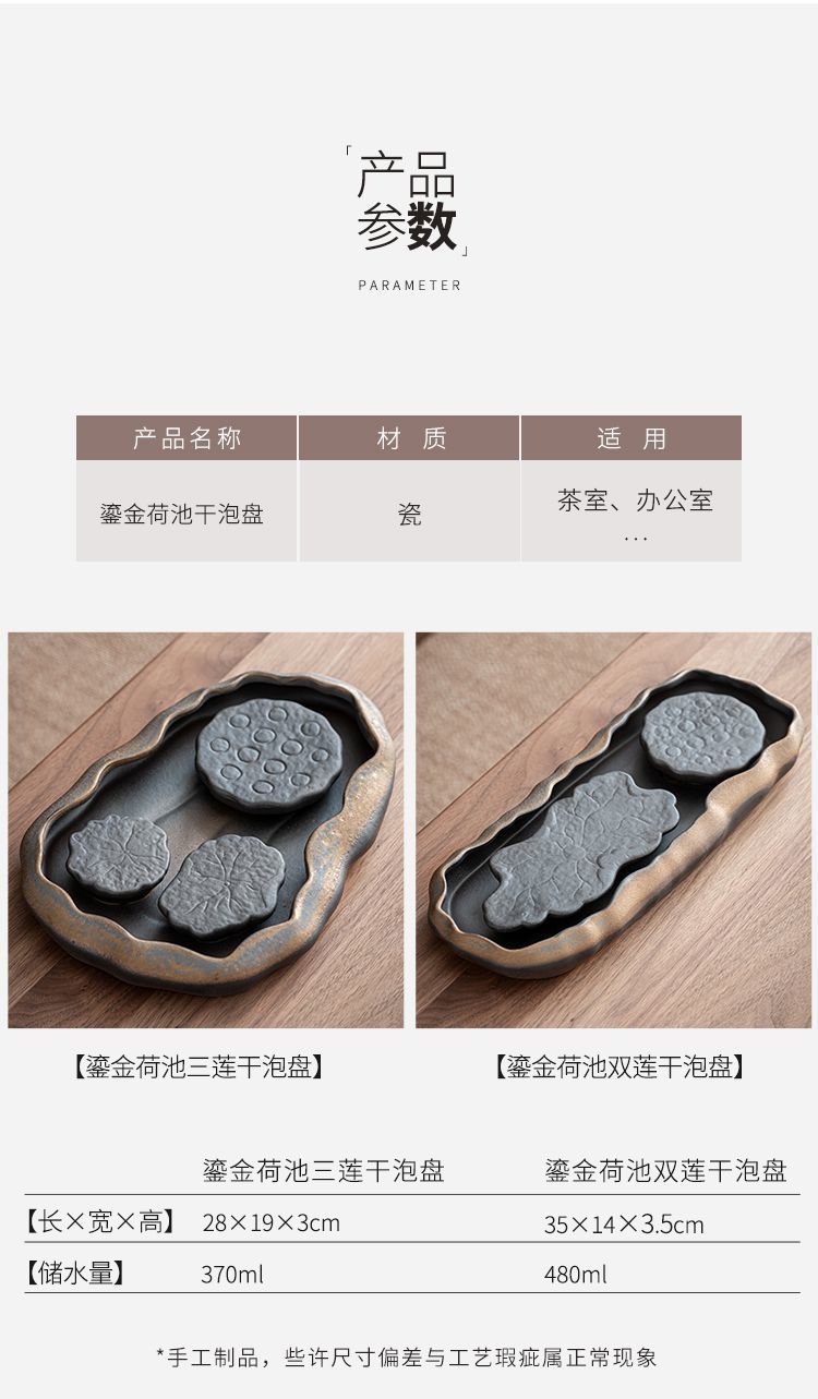 鎏金粗陶茶盘禅意干泡茶台小号双人用茶海复古风茶具托盘家用