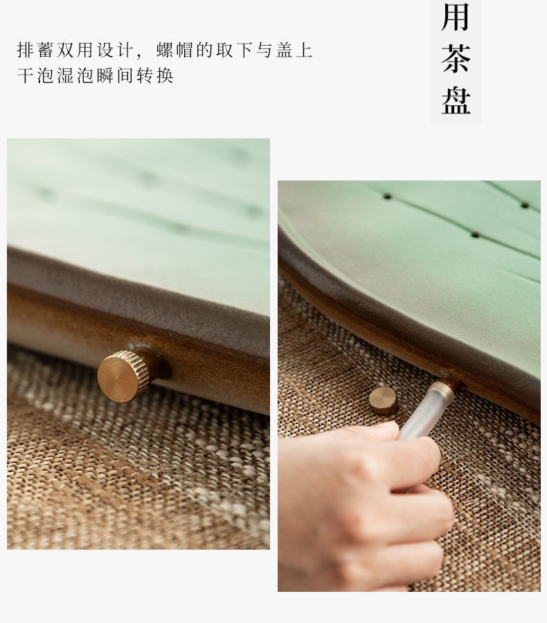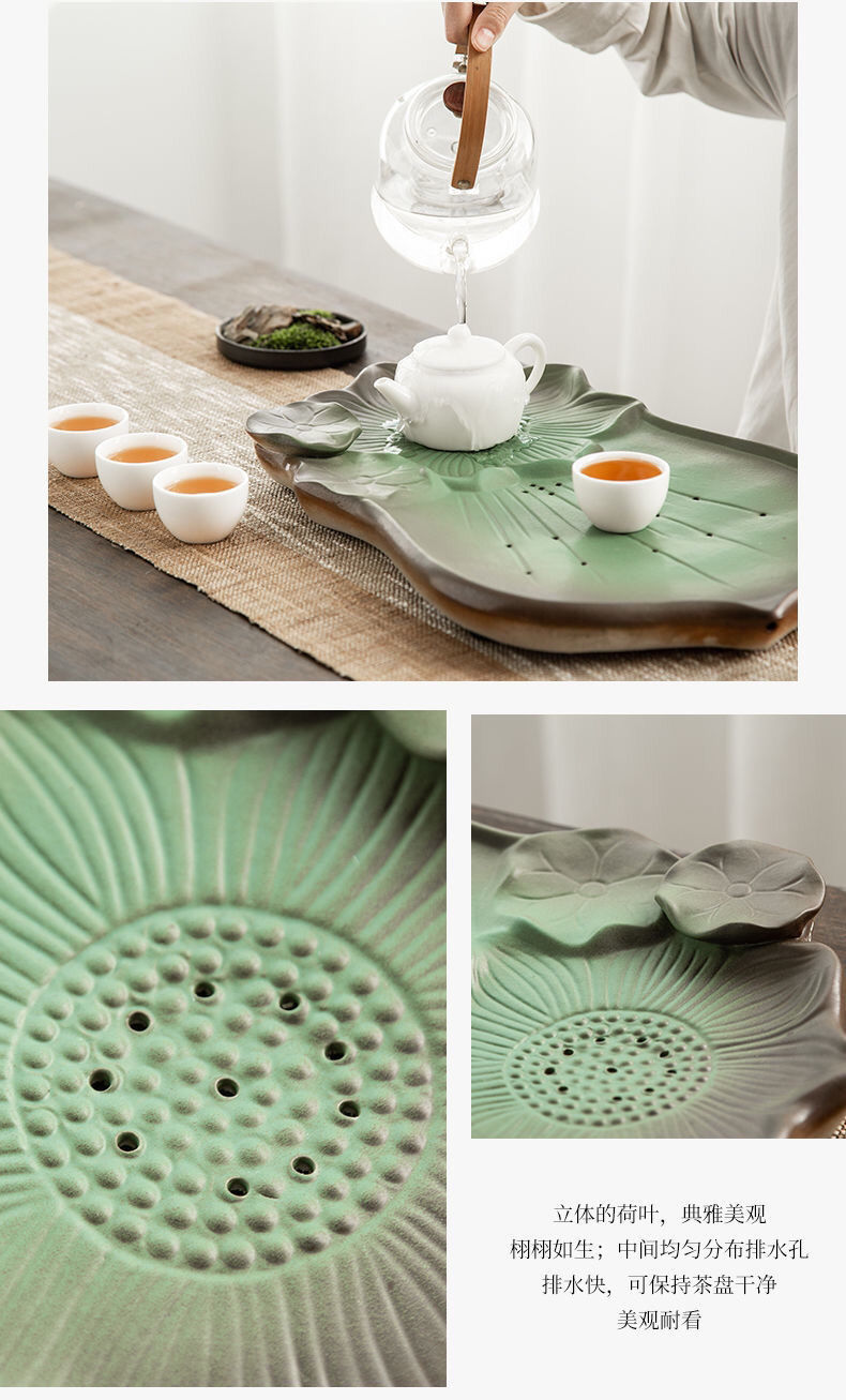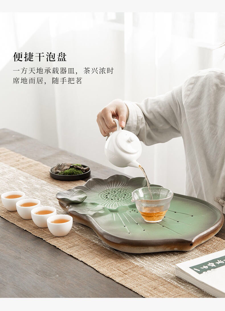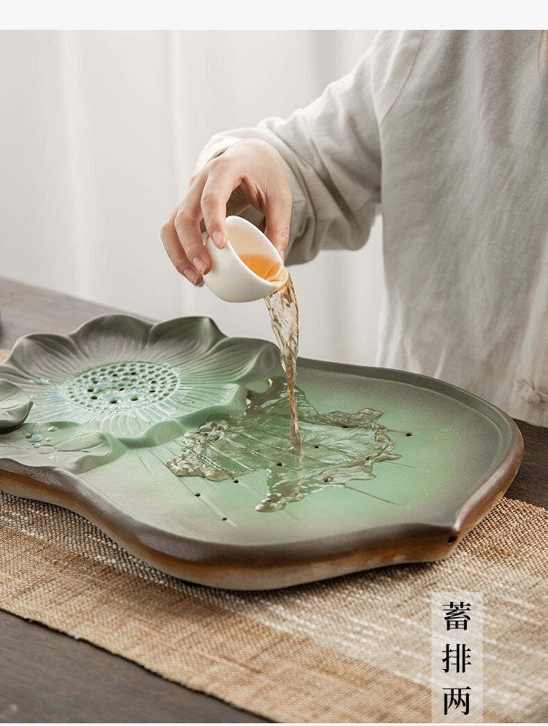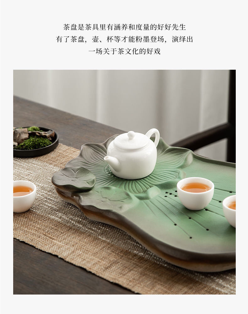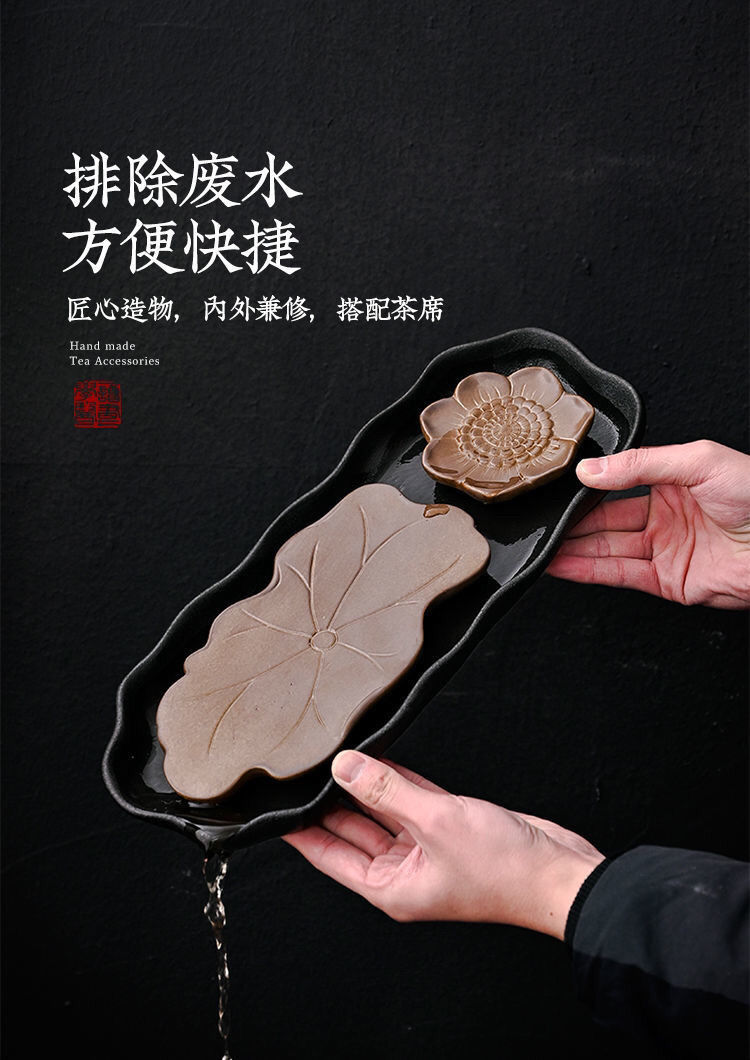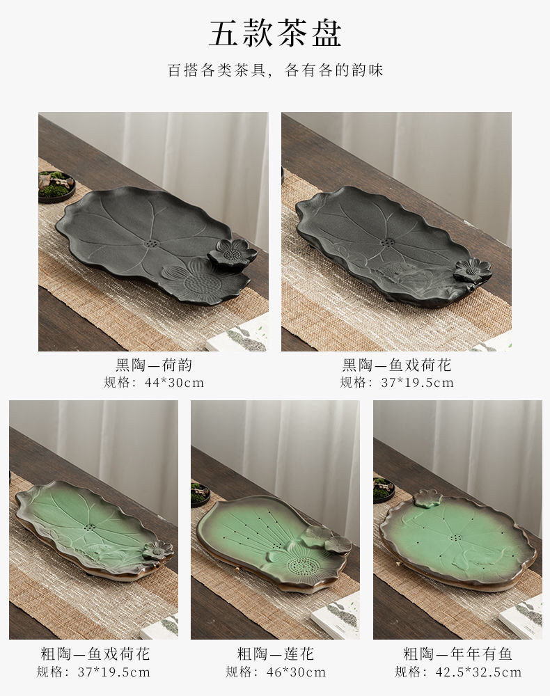 鎏金粗陶茶盘禅意干泡茶台小号双人用茶海复古风茶具托盘家用