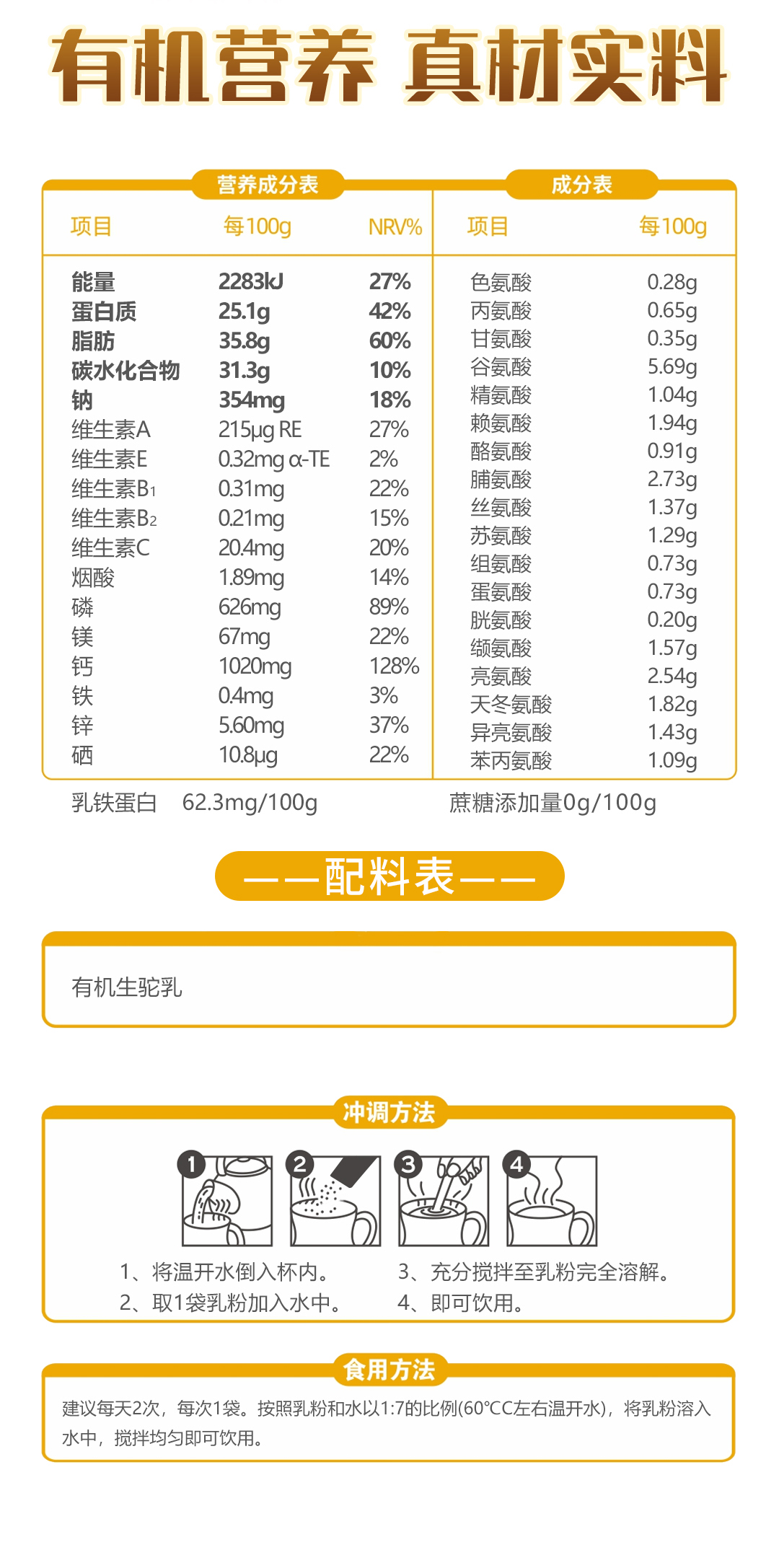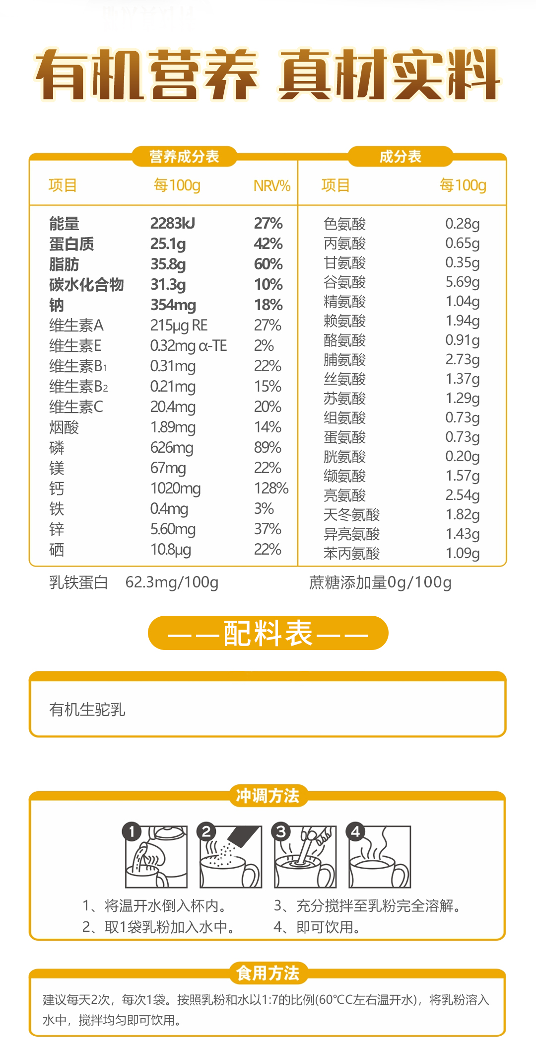 丝路驼宝有机驼乳粉礼盒装(320g/罐*2)
