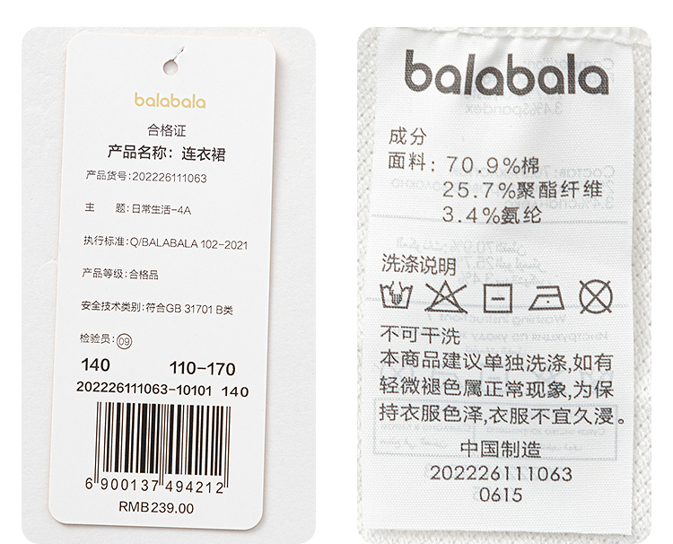 【商场同款】巴拉巴拉童装女童裙子儿童连衣裙2026新款夏装娃娃领