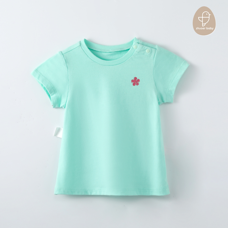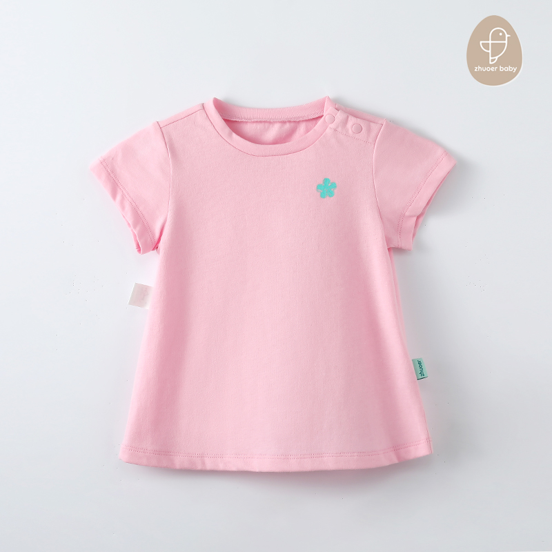 【夏款针织短袖T恤】卓儿代工品牌 出口余单 女童纯棉针织短袖T恤套头衫打底衫圆领上衣