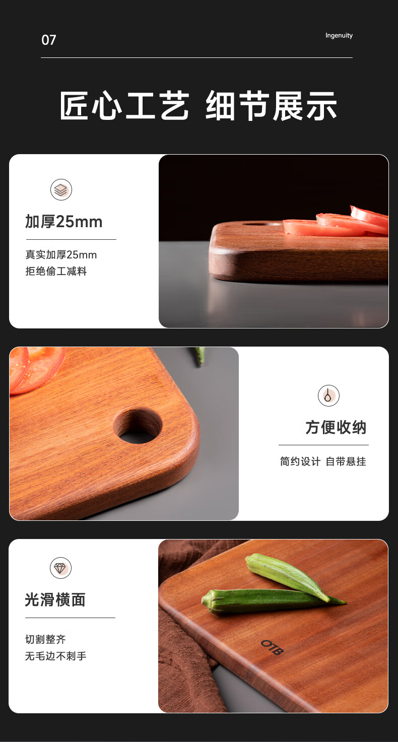 OTB乌檀木菜板家用实木砧板木制切菜板案板厨房专用面板整木占板剁肉
