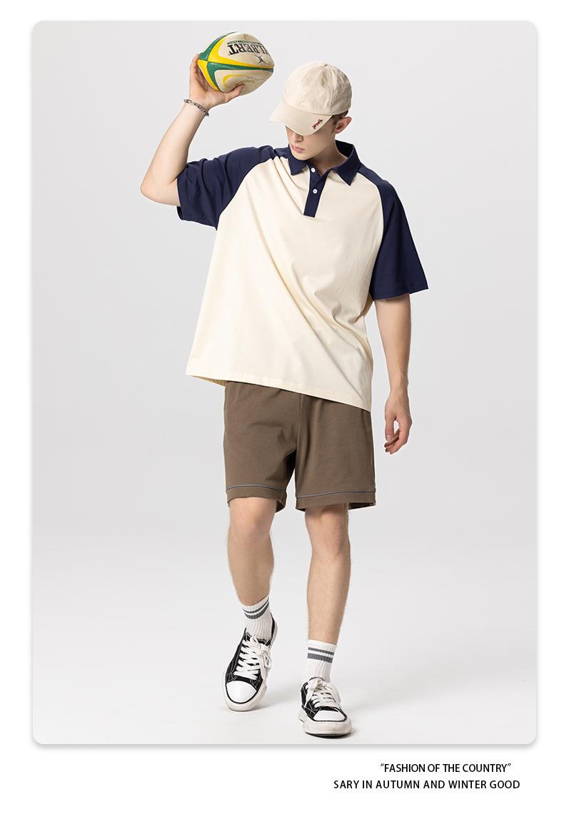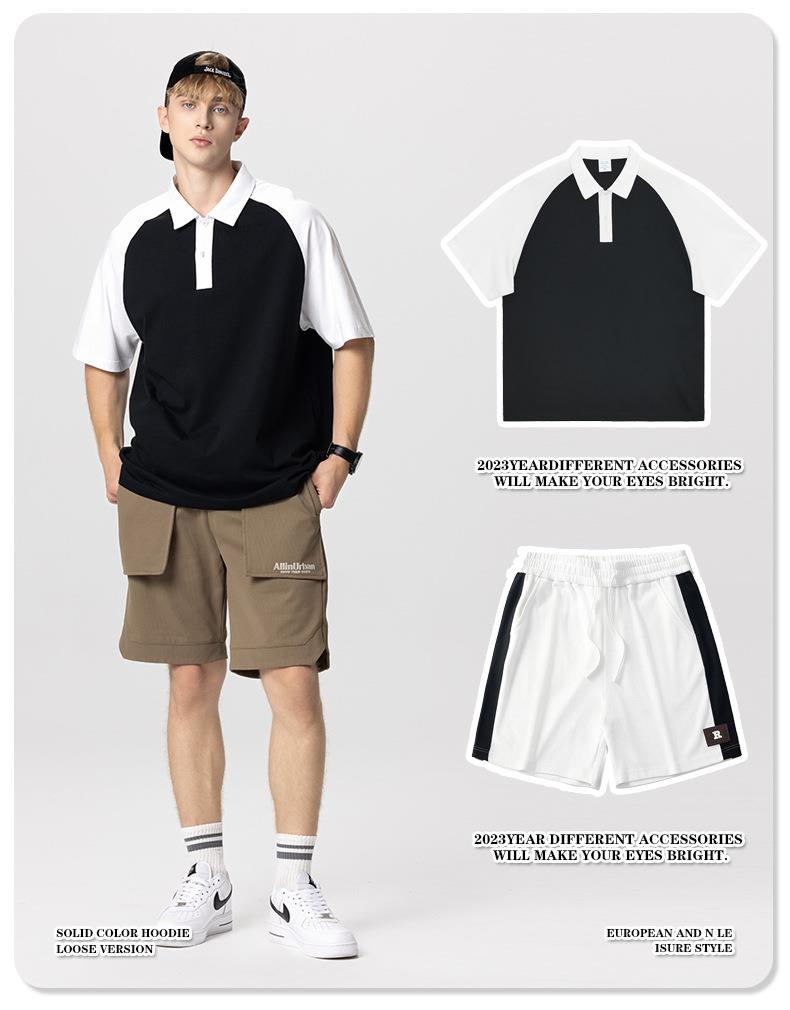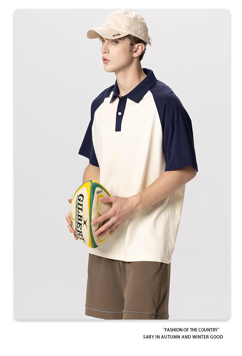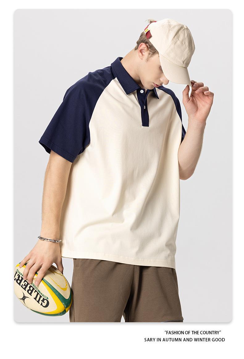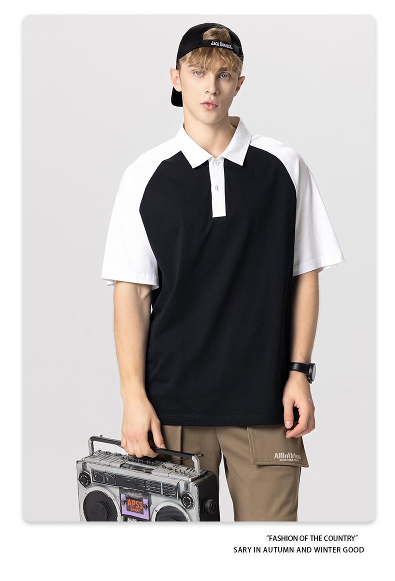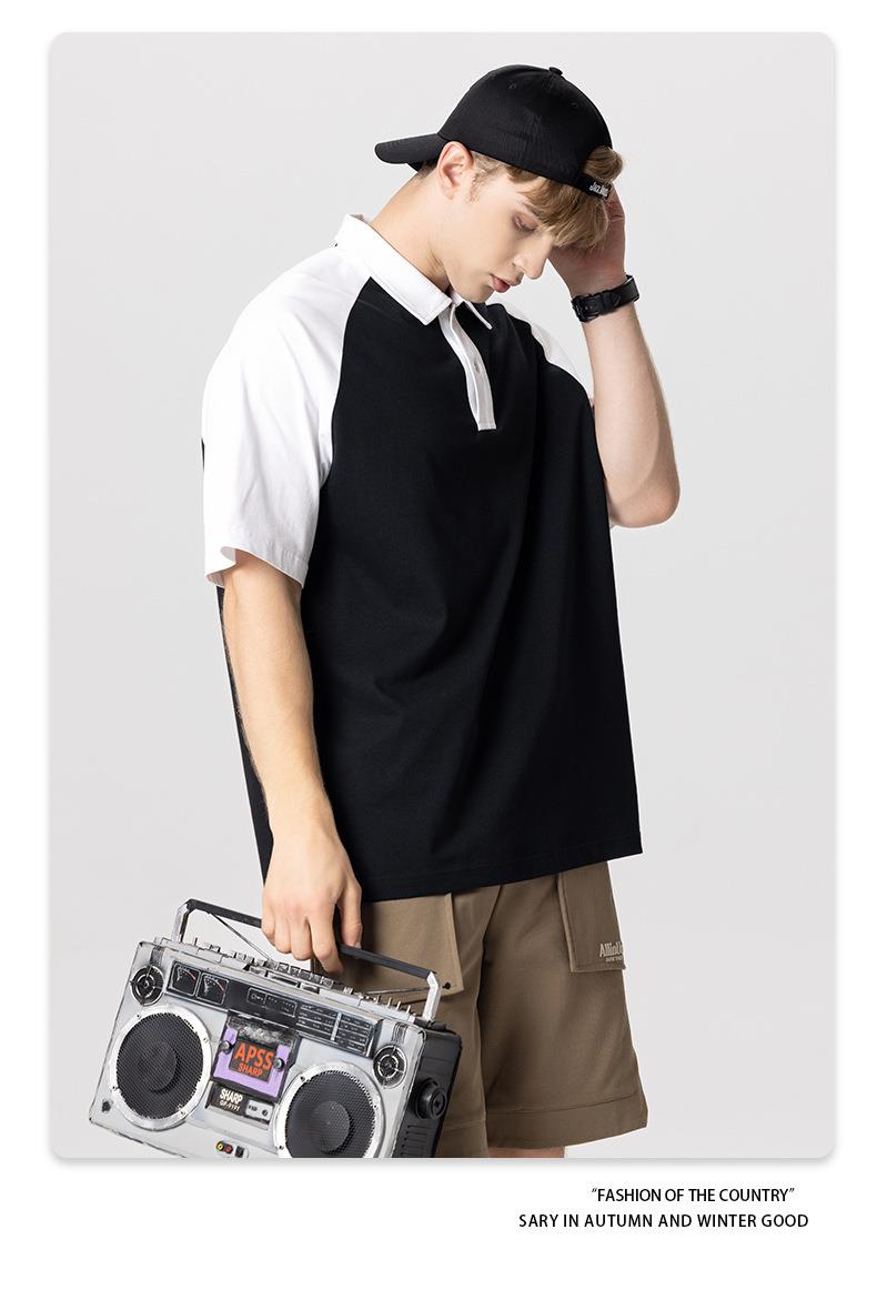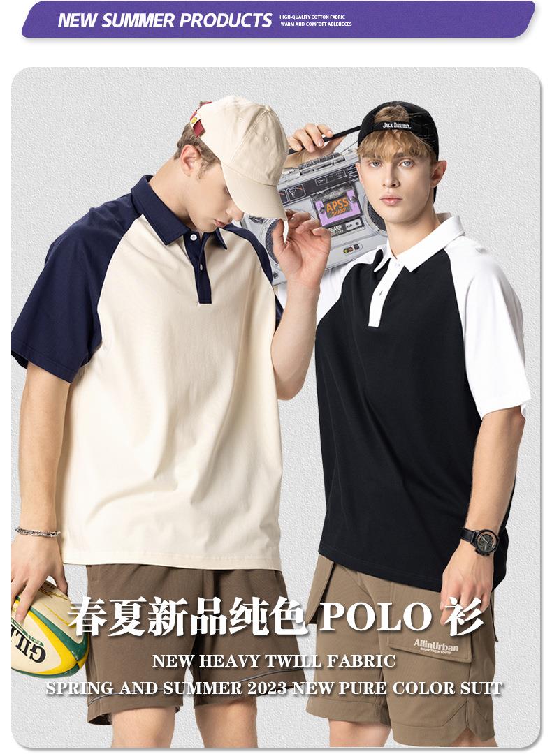 RS男装|2023夏季POLO短袖T恤男女美式潮牌宽松撞色翻领男士短袖衫