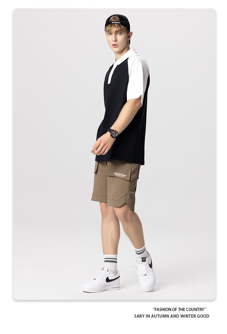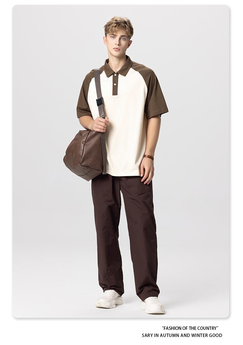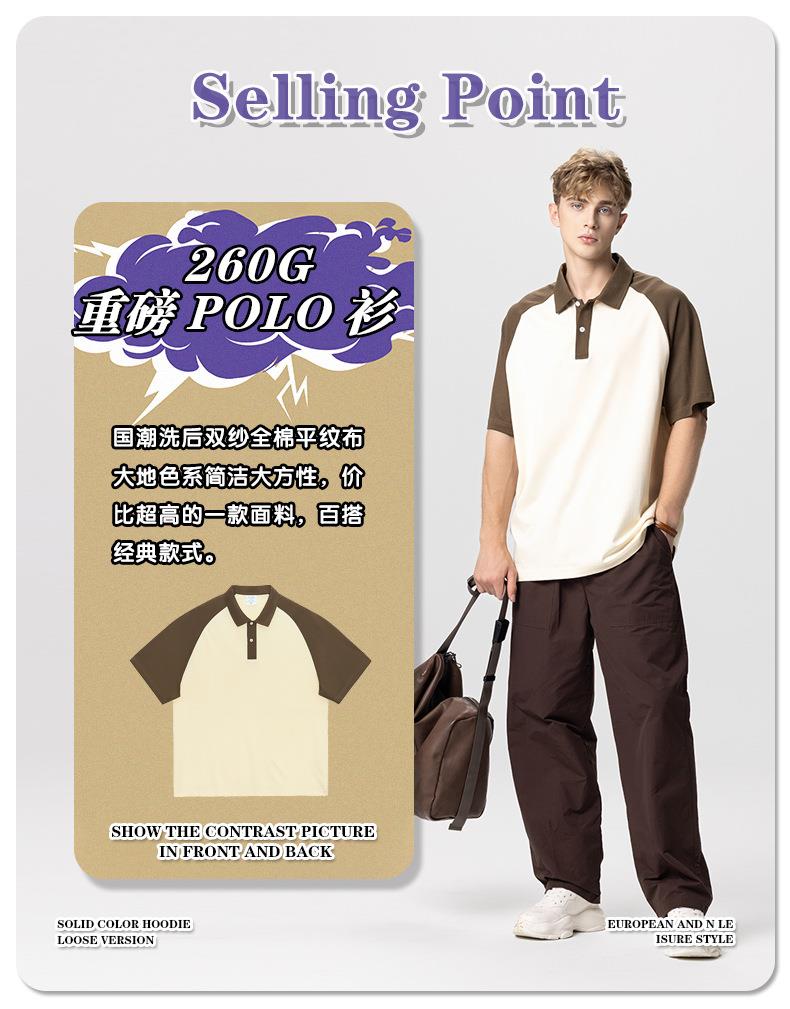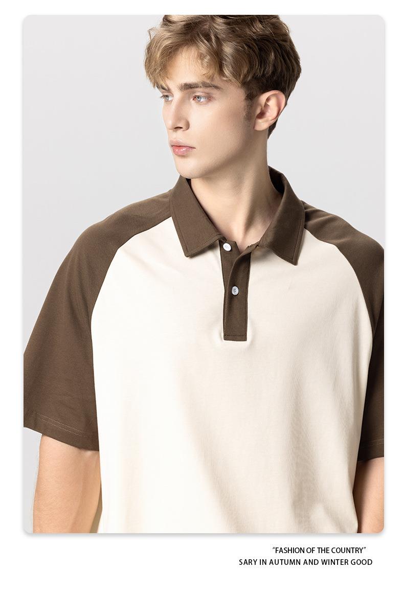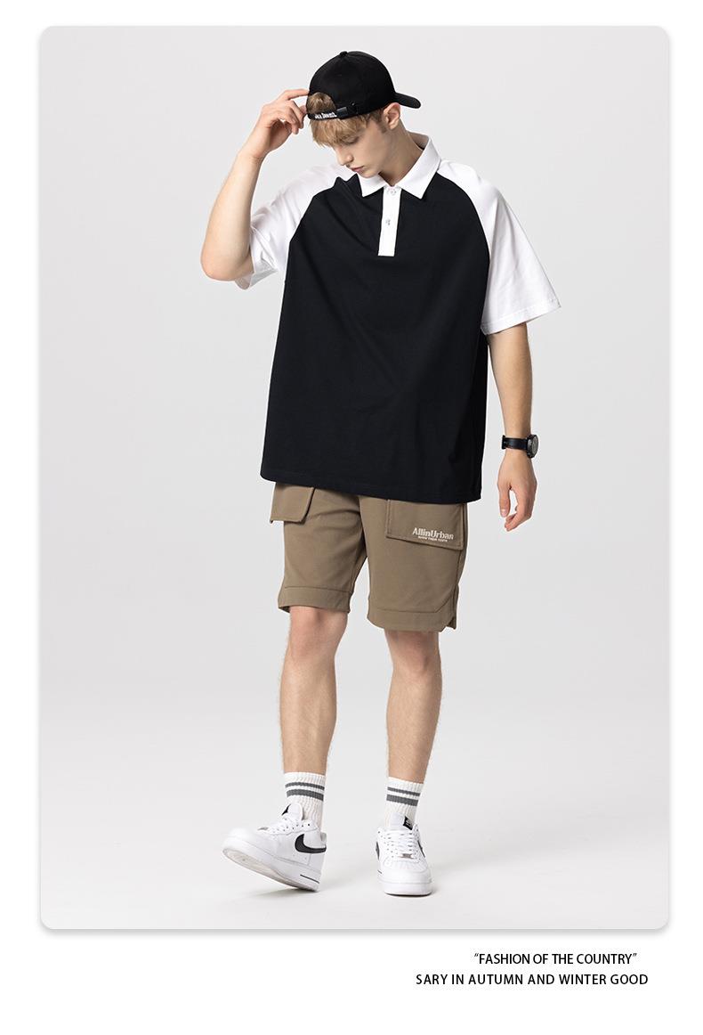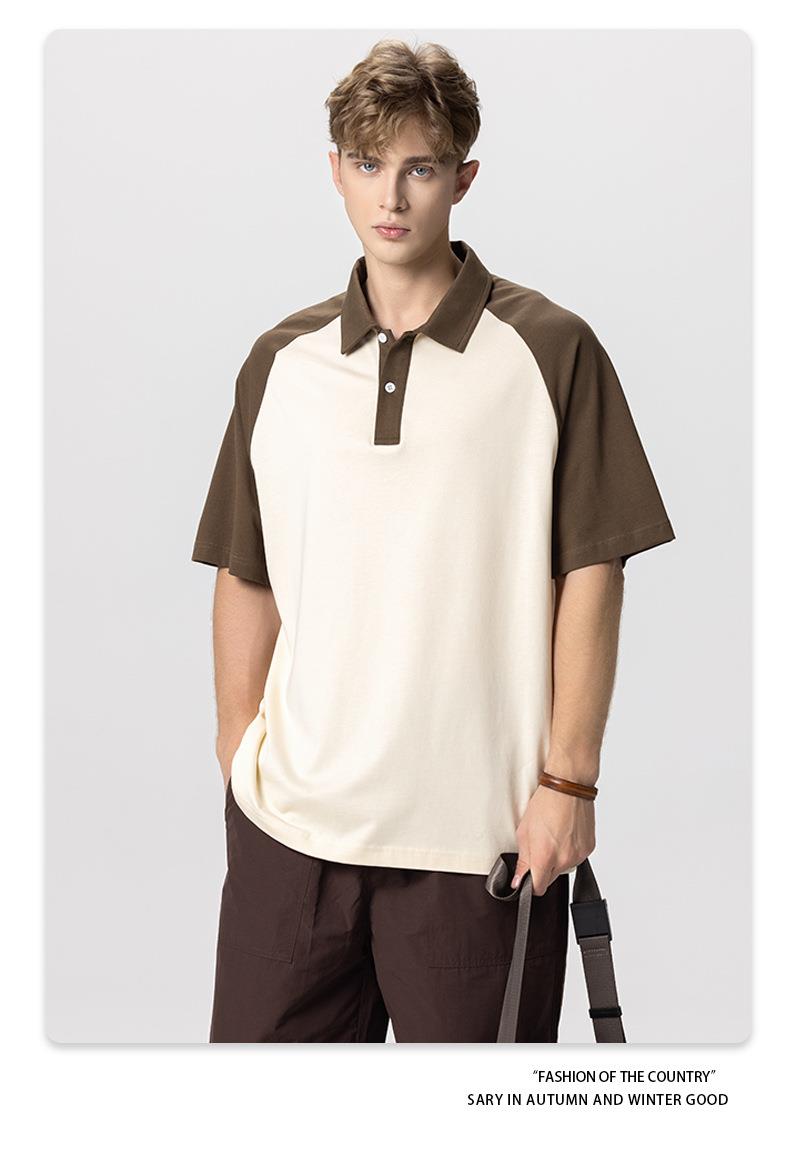 RS男装|2023夏季POLO短袖T恤男女美式潮牌宽松撞色翻领男士短袖衫