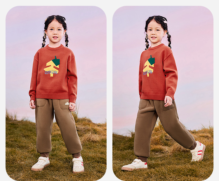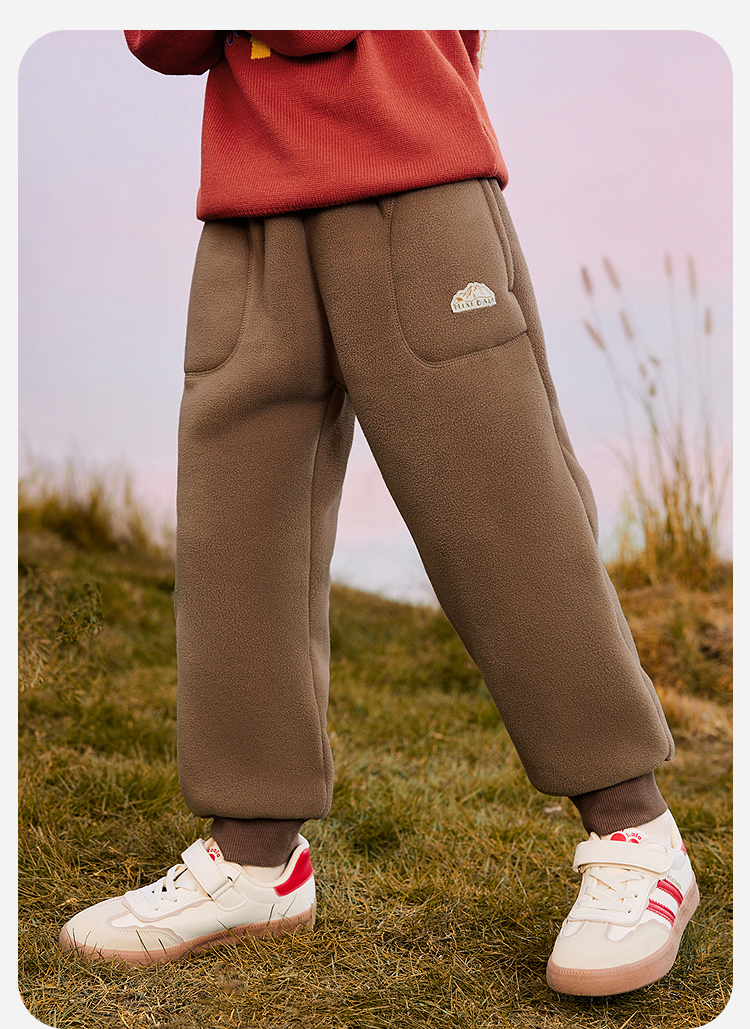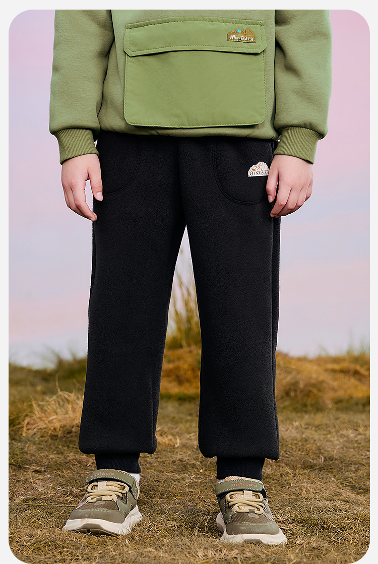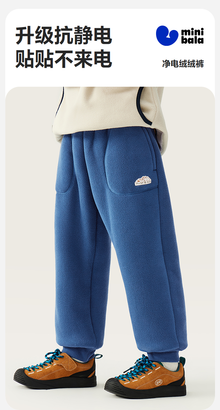 迷你巴拉男童女童儿童裤子2025冬新品抗静电内里加绒保暖长裤