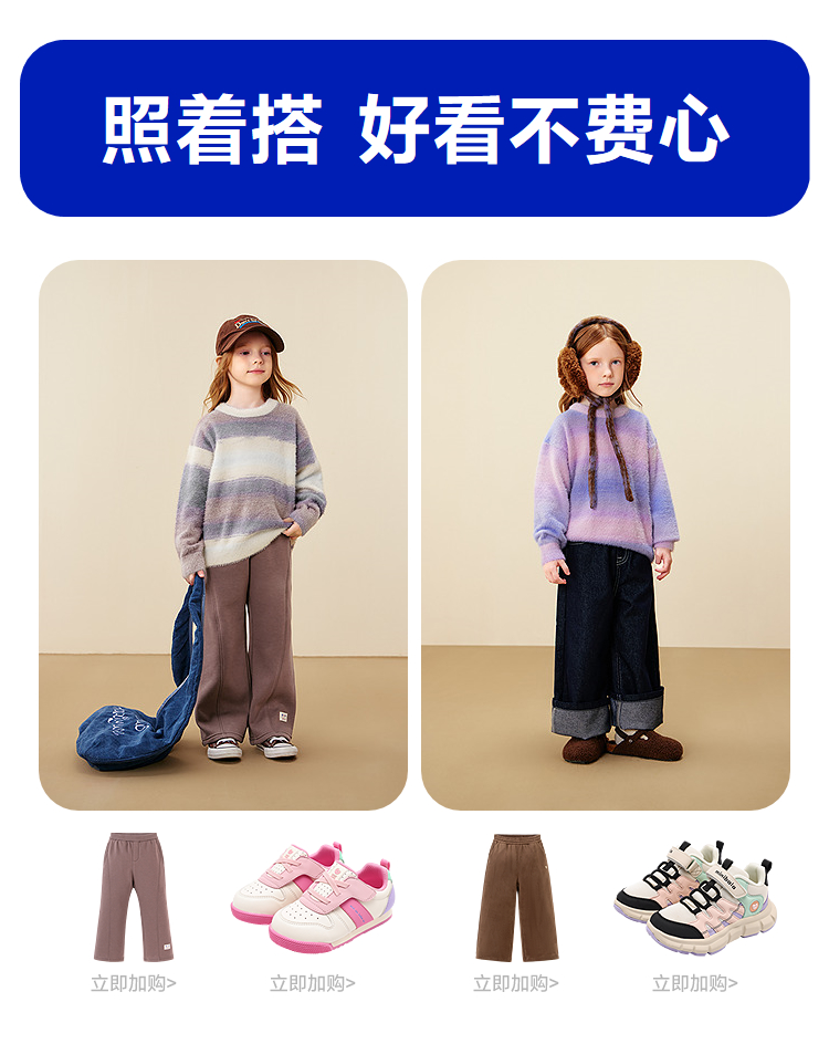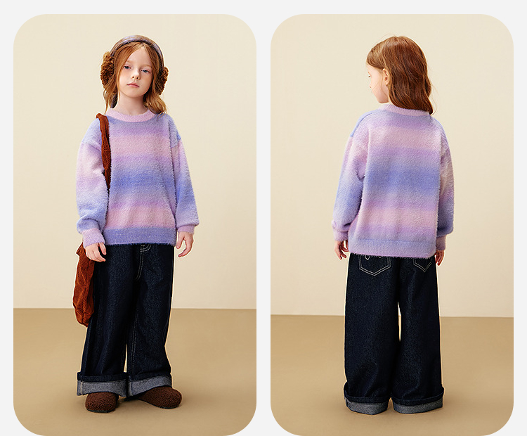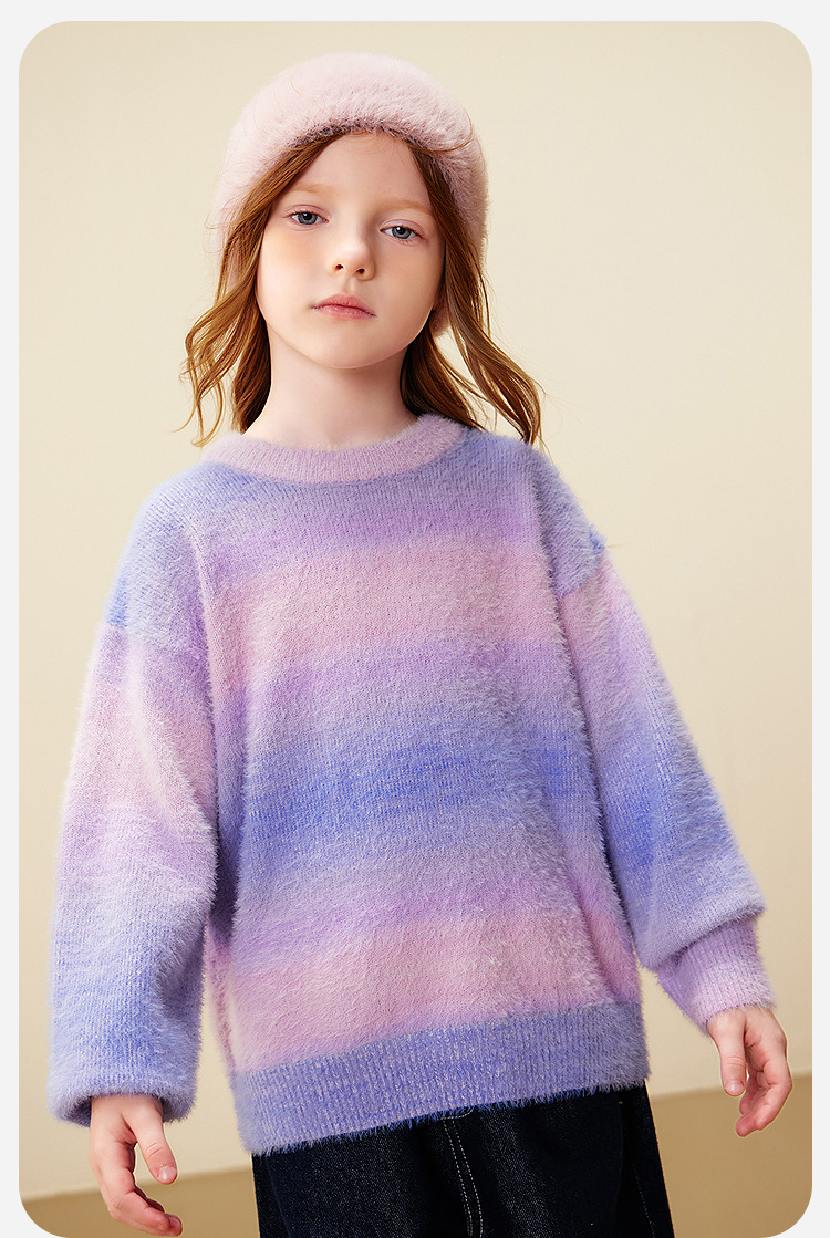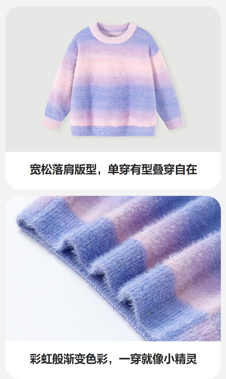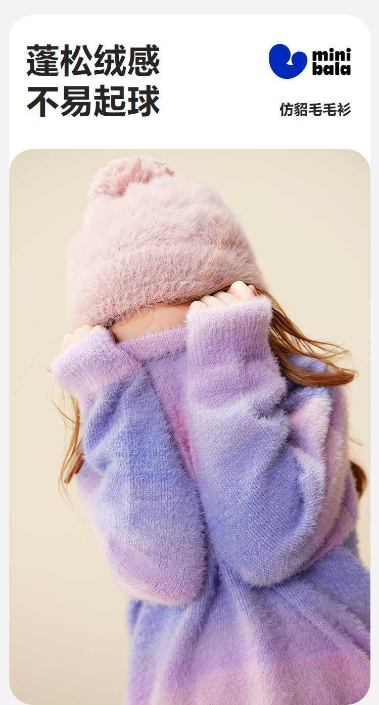 迷你巴拉巴拉男女童儿童毛衣2025冬季新品仿貂毛多彩渐变柔软毛衫