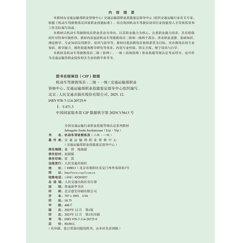 书名:机动车驾驶教练员(二级·一级)
