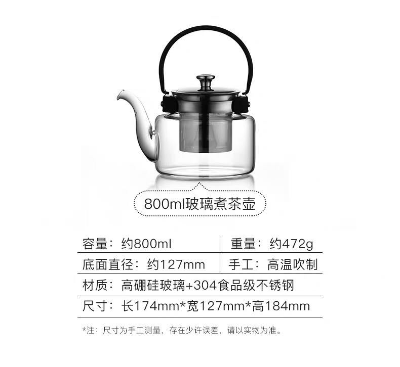 瑞鑫源高硼硅玻璃煮茶壶800ml小号