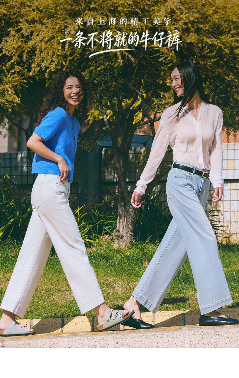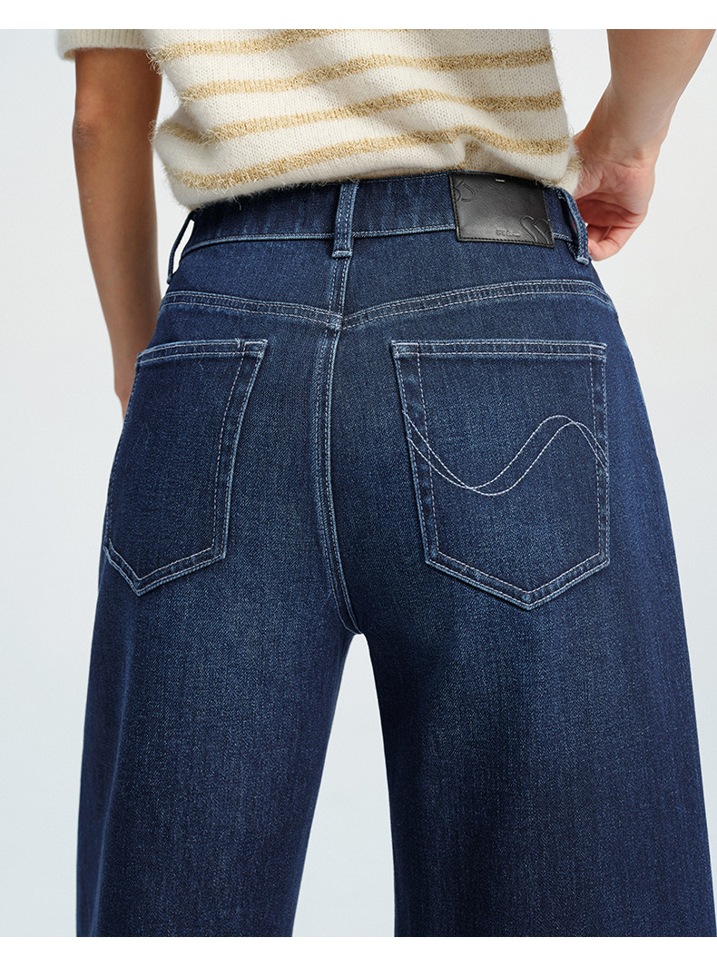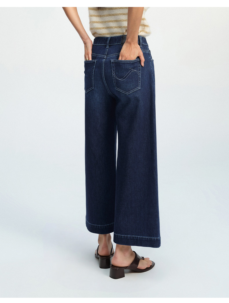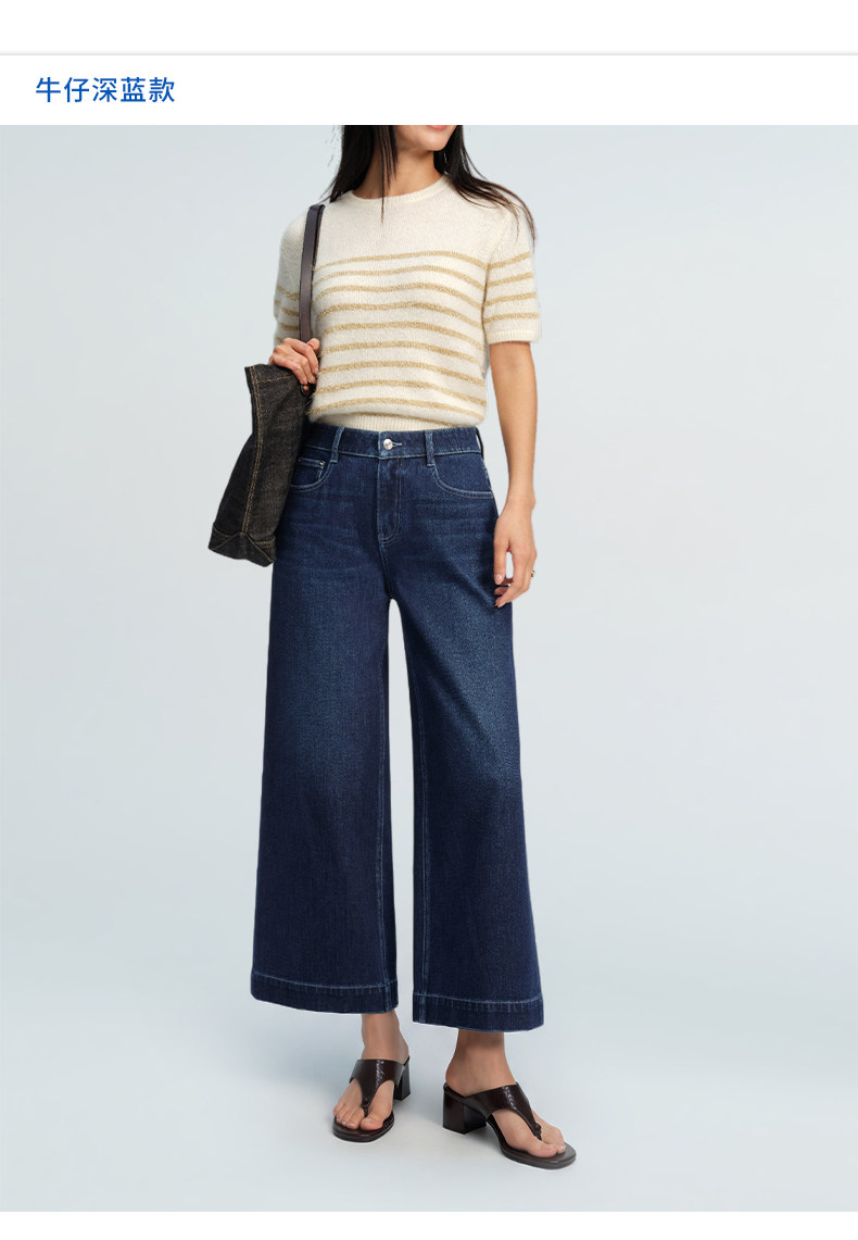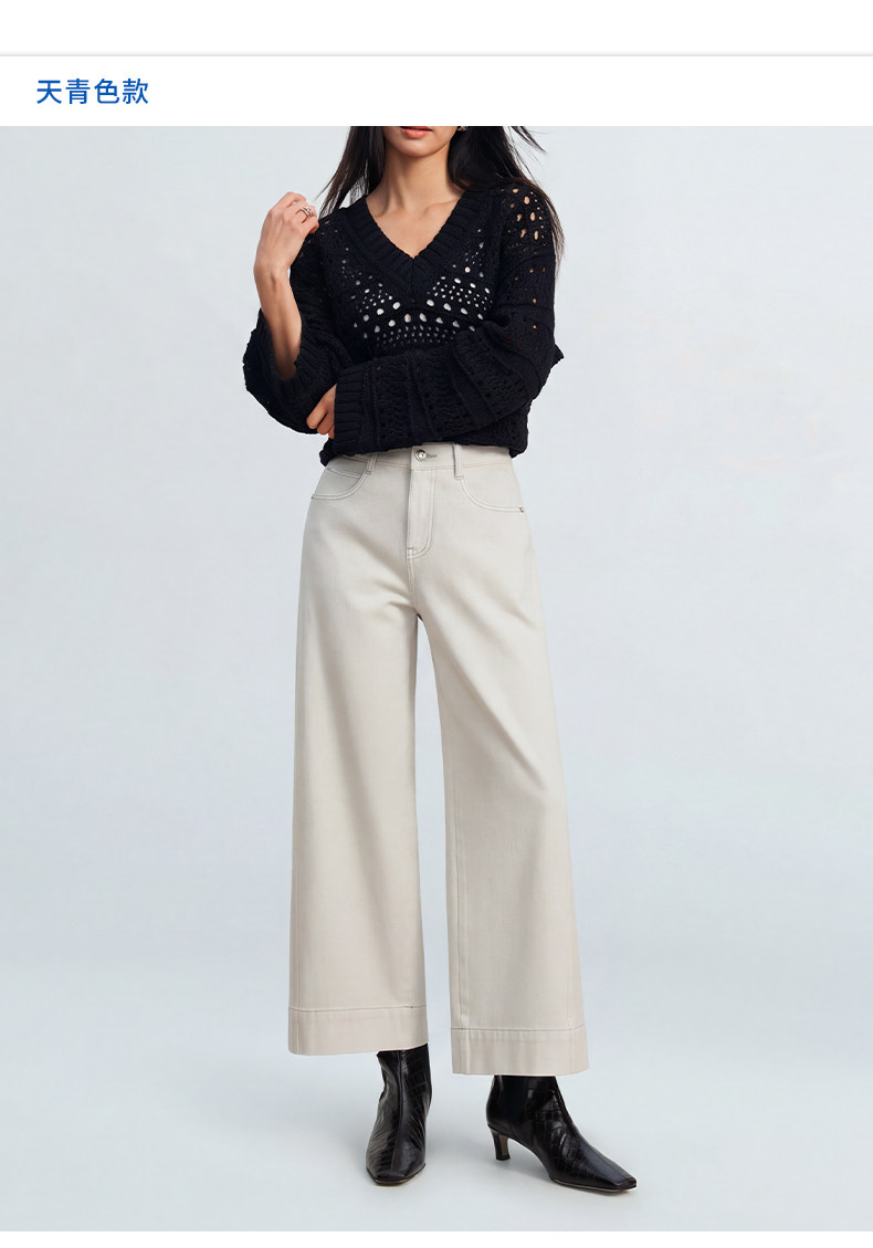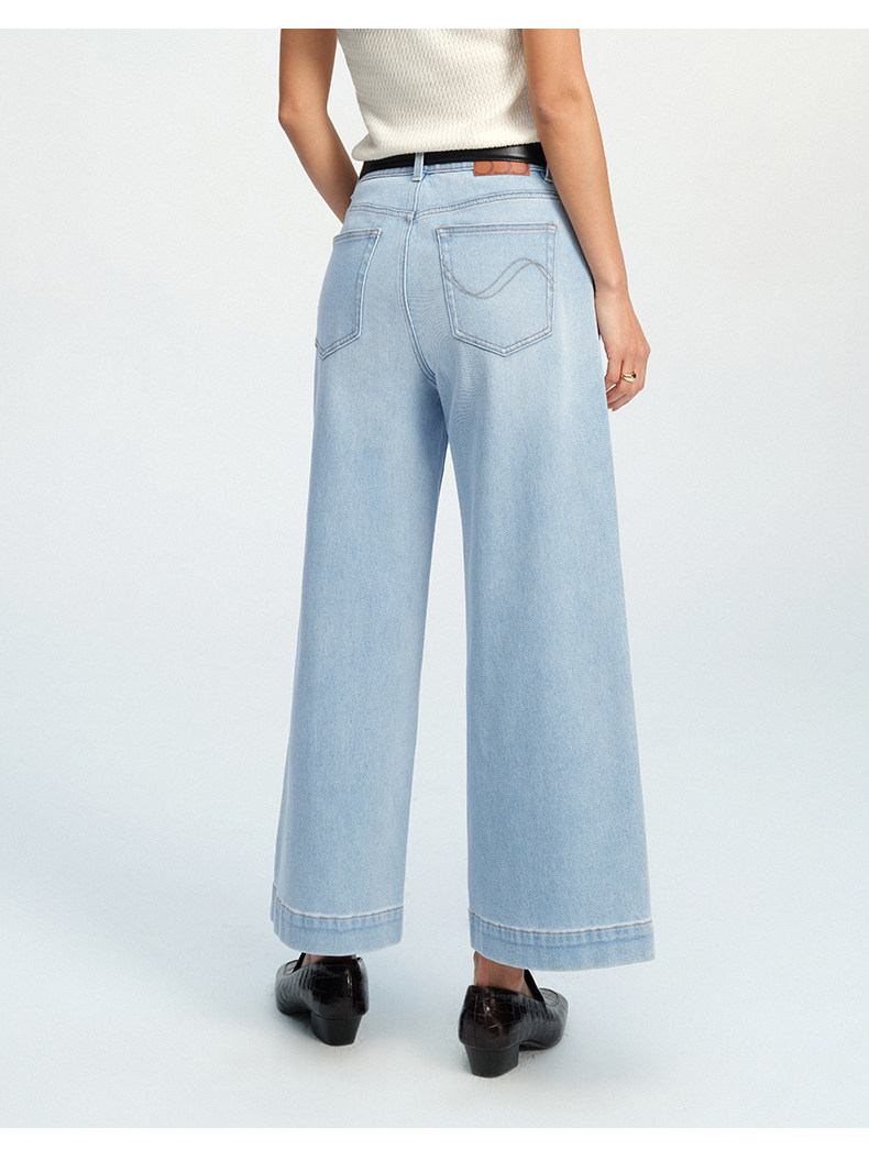 【八分威化裤】simplepieces春新款SPS牛仔女四面弹宽松阔腿裤