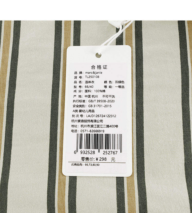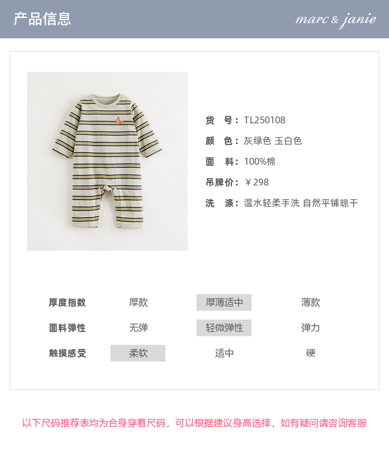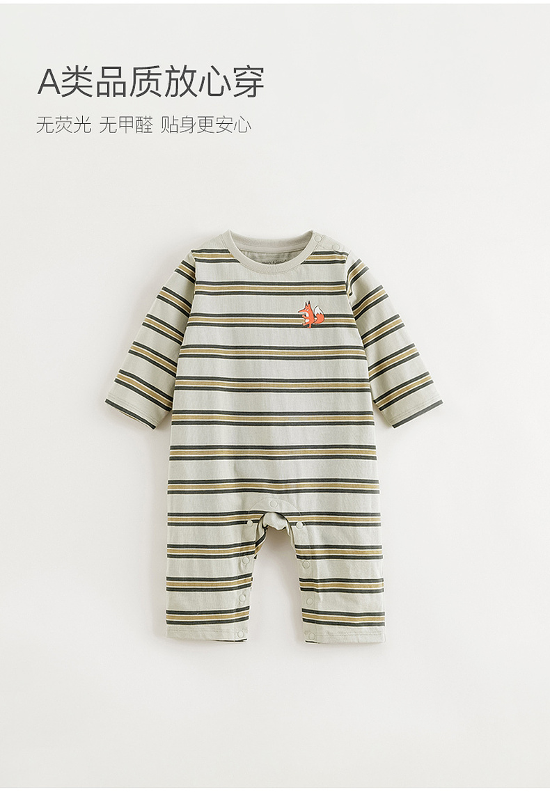 [A类纯棉]马克珍妮男宝宝条纹连体衣婴儿哈衣爬服春装新款250108
