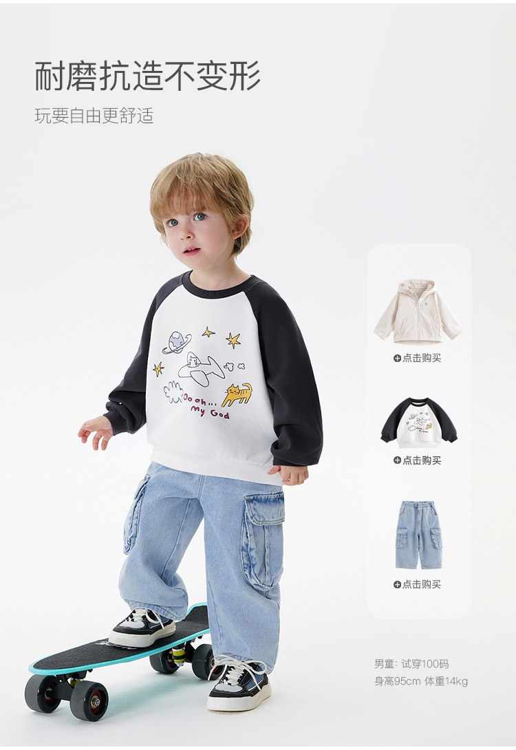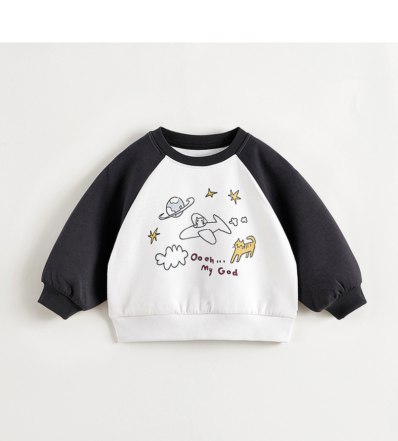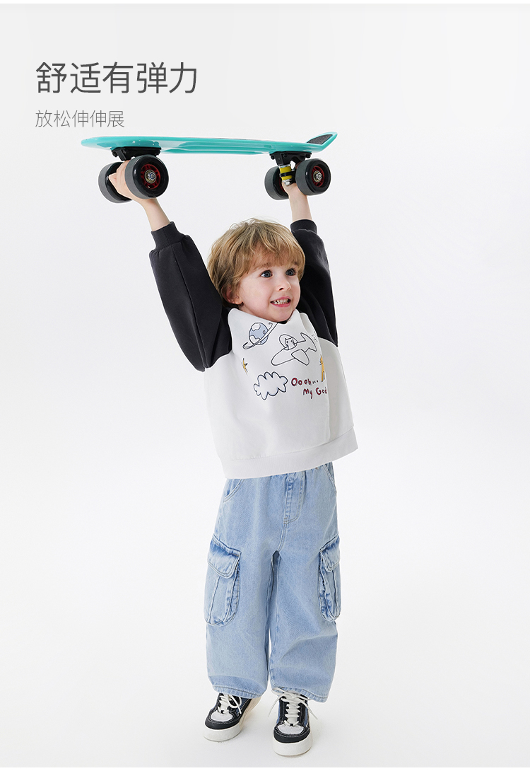 马克珍妮男童涂鸦撞色卫衣儿童宽松上衣2025年宝宝春装新款250032