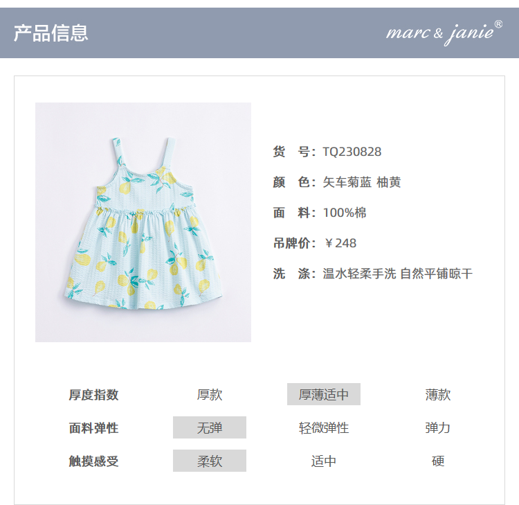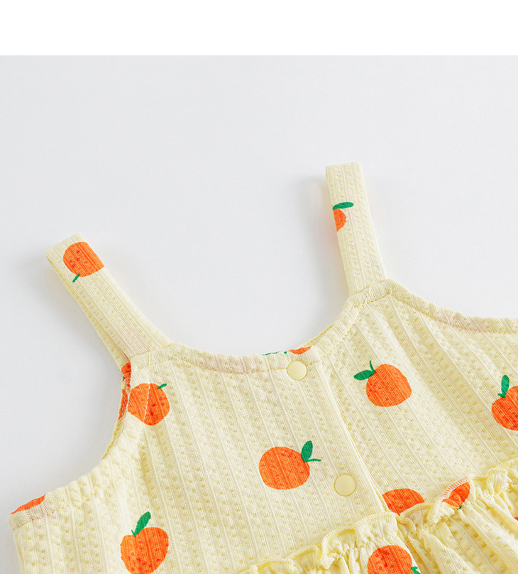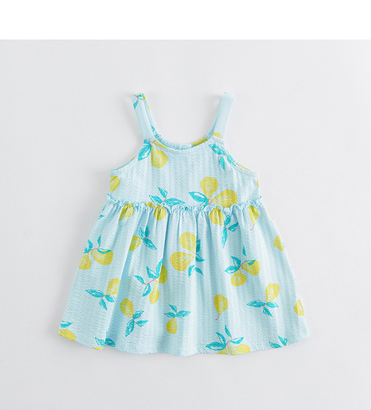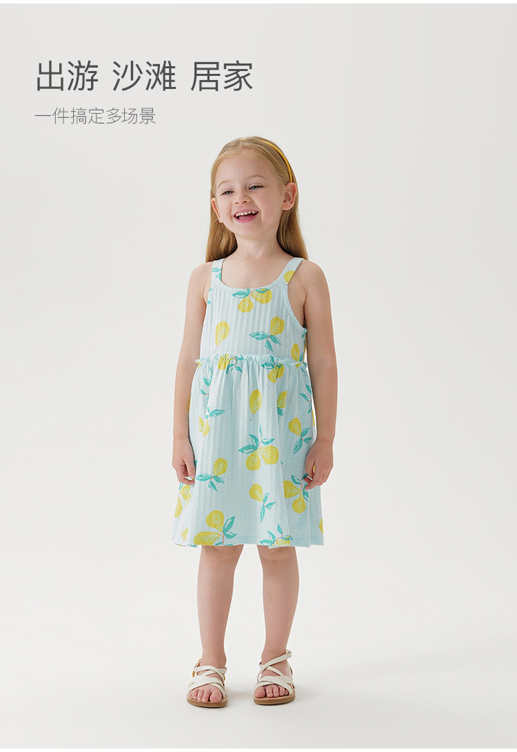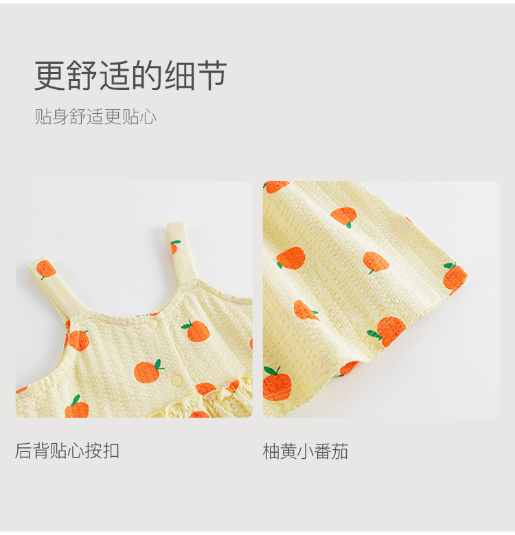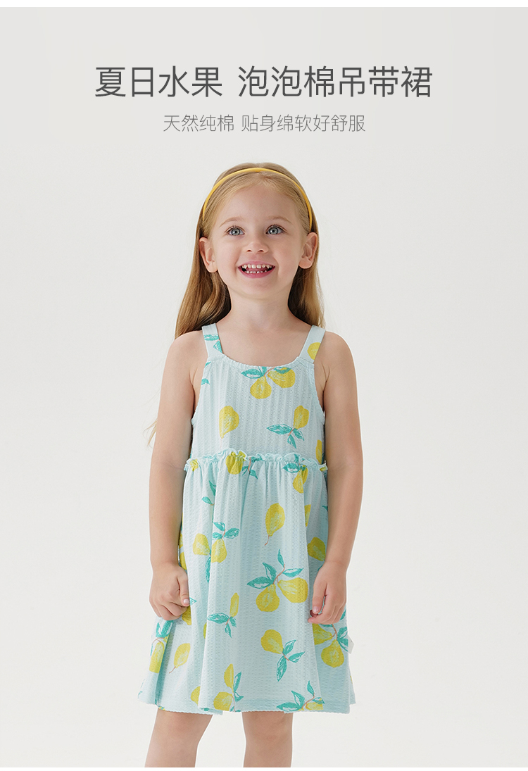 马克珍妮宝宝夏装新款 女童水果满印泡泡棉吊带裙子连衣裙230828