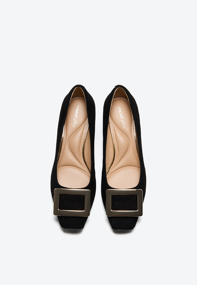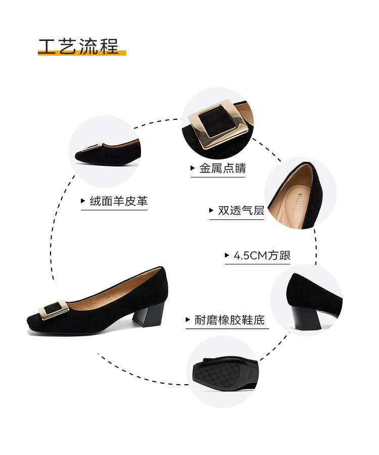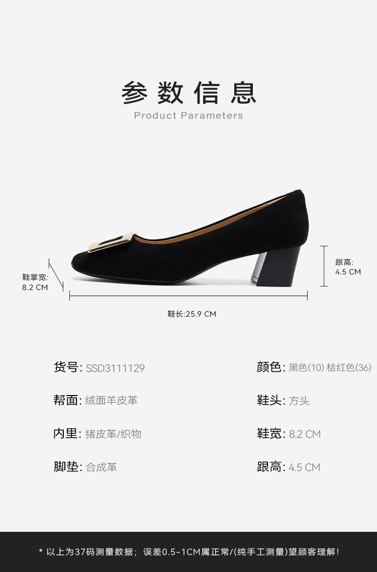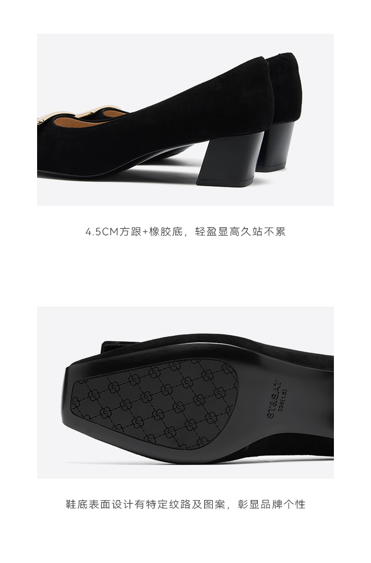 【方扣系列】星期六时尚简约金属扣粗跟单鞋SSD3111129