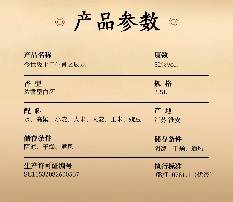 2.5L52度今世缘十二生肖纪念酒(甲辰龙年)