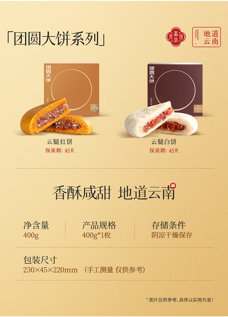 嘉华云腿大饼多口味 滇式特色团圆大饼 中秋月饼自家人吃的好月饼
