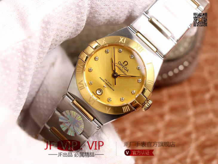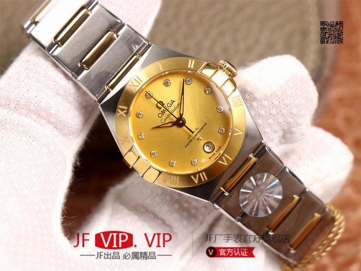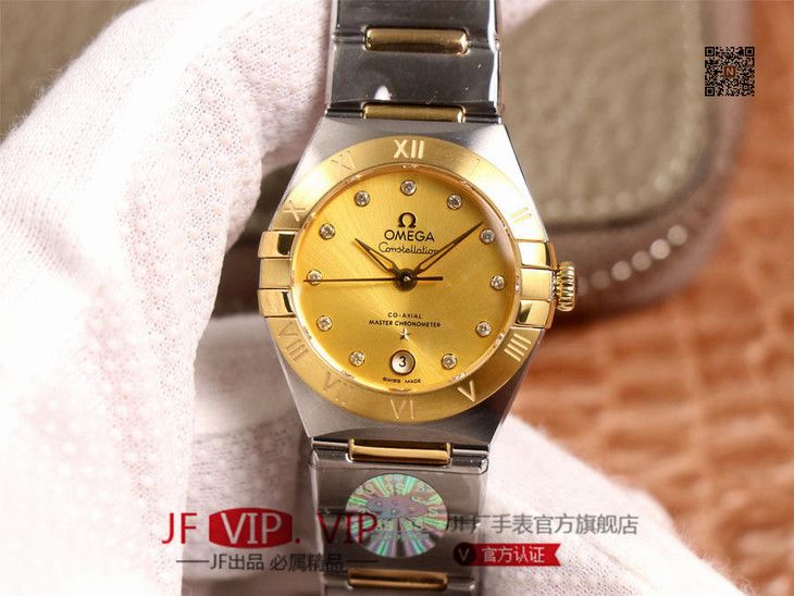 3s抢先体验第五代欧mi茄星座系列!29mm.作为星座大改款,独特的表扣按钮能随意调节表带长度(2mm);全新的表壳设计更纤细修长搭配锅盖底玻璃看上去更薄;升级版8700机芯甲板搭载与正品一致的避震器,甲板内部沿用极为稳定的nh05机芯;全新的台湾石托使字面更加细腻。