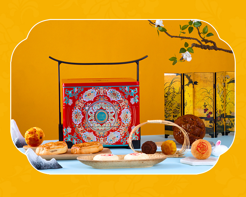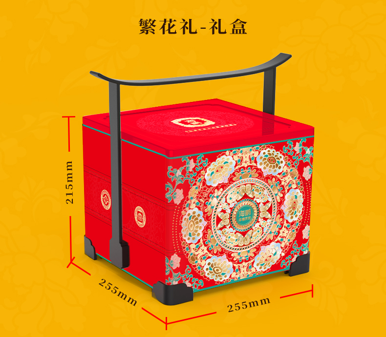 【繁华礼盒】花开富贵正方手提礼盒15饼10味