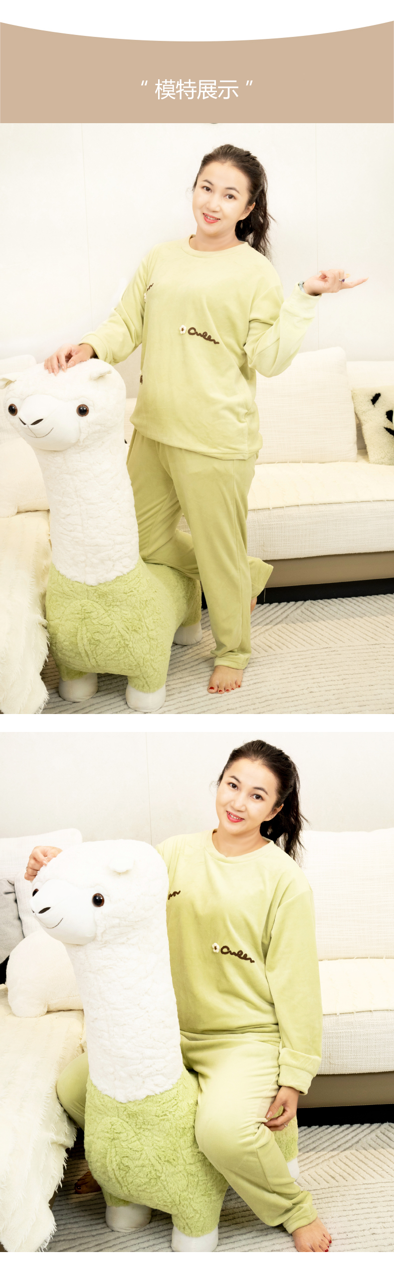 【169元1套】秋冬女士长袖长裤海岛绒套头家居套装-6243221