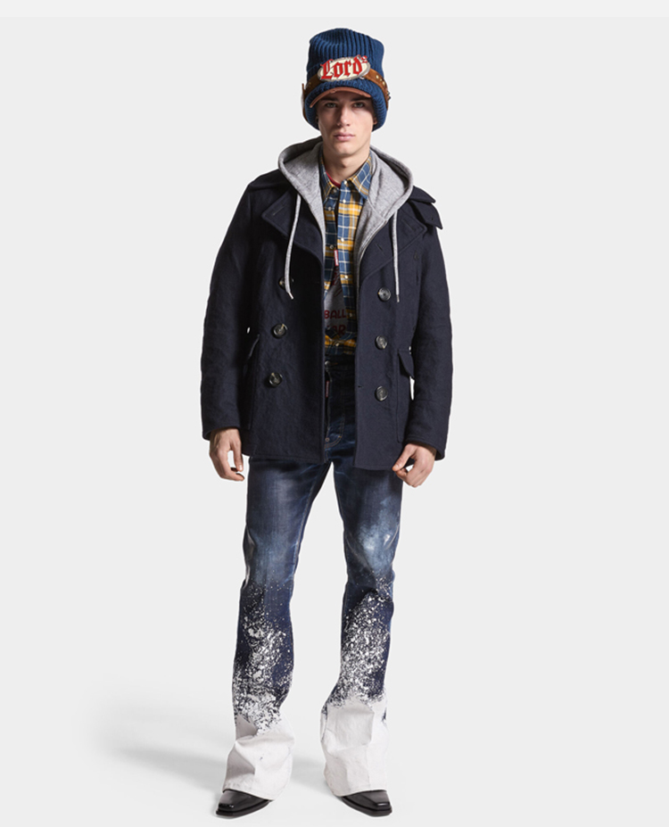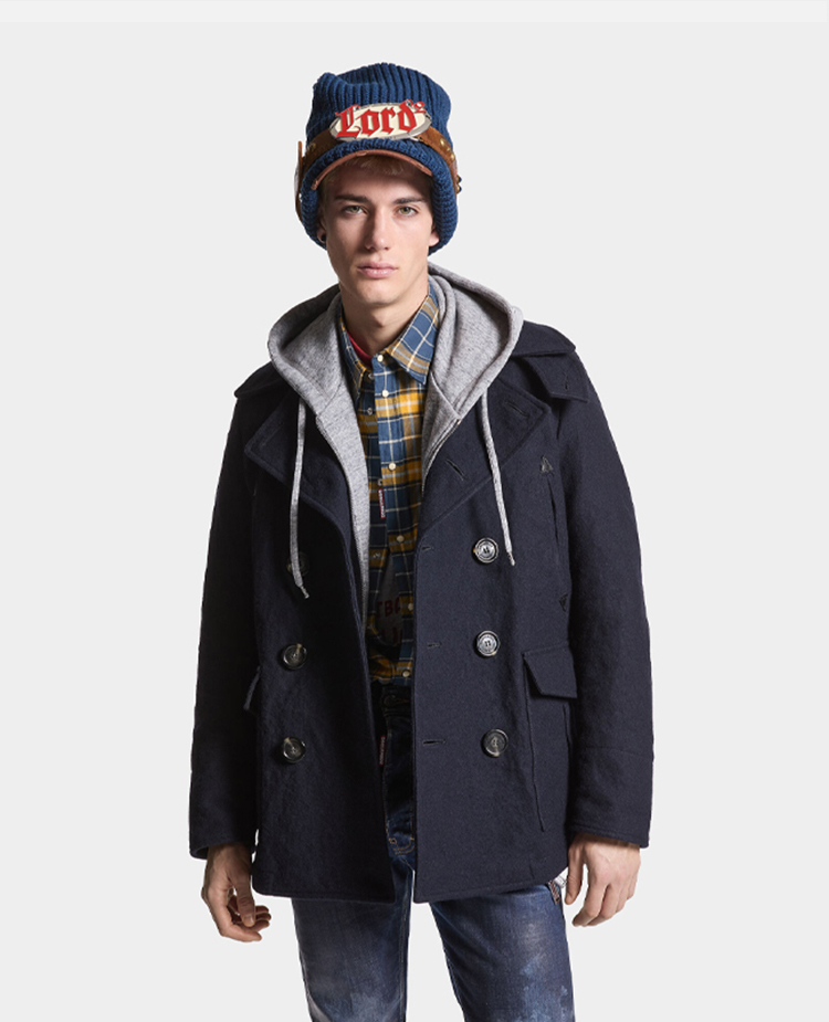 DSQUARED2 男士毡羊毛短大衣 深蓝色 S71AA0459 S44216 477