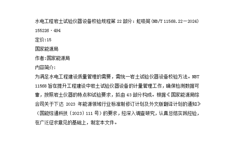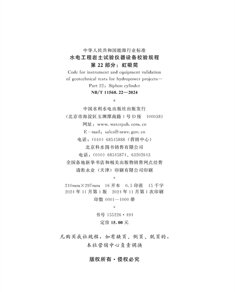 水电工程岩土试验仪器设备校验规程第22部分:虹吸筒(NB/T 11568.22—2024)