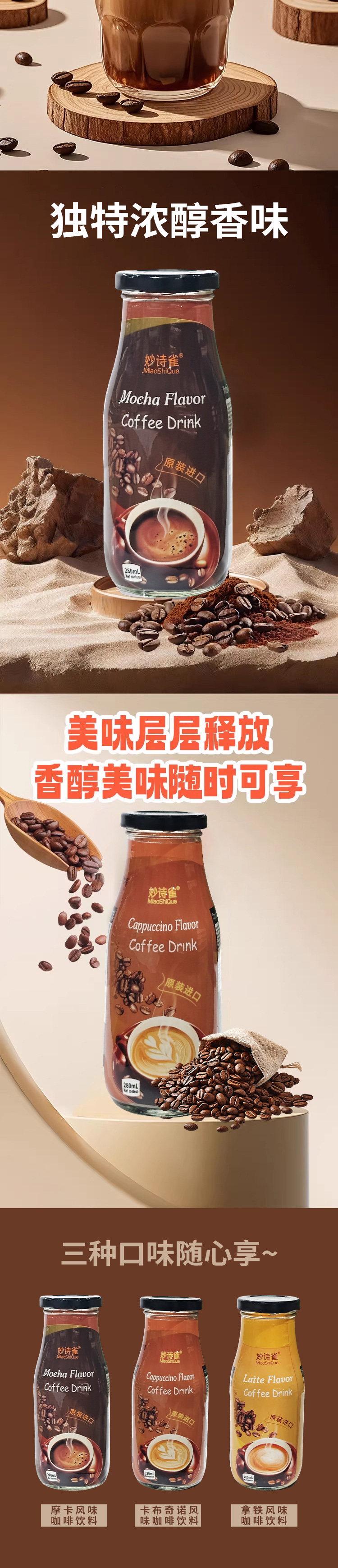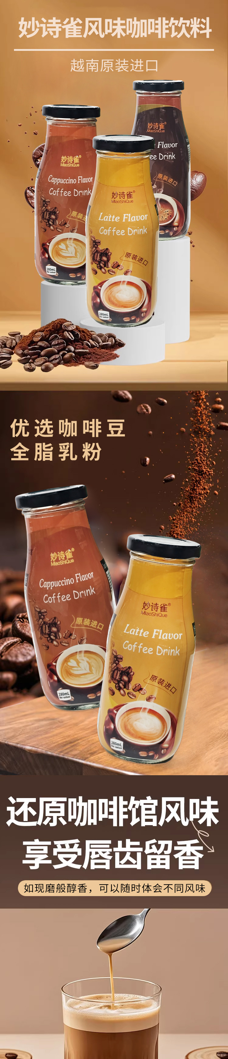 越南进口妙诗雀摩卡丨拿铁丨卡布奇诺风味咖啡饮料280ml/瓶 【买3瓶 享立减】
