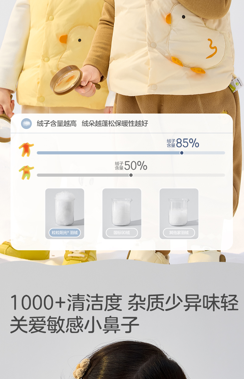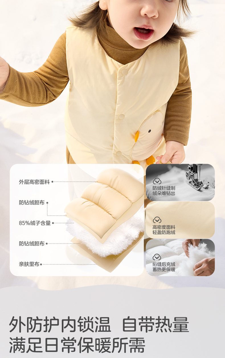粒粒阳光儿童羽绒马甲婴幼儿白鸭绒三防马甲秋冬保暖背心