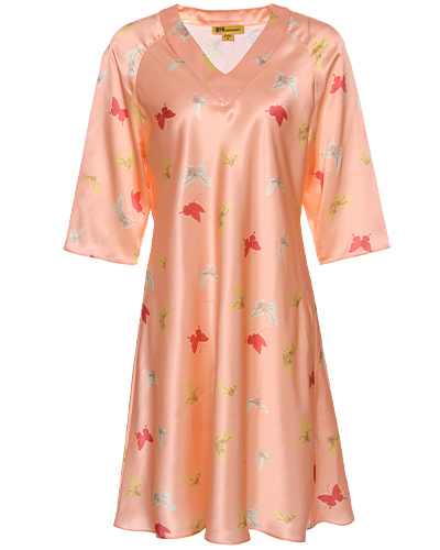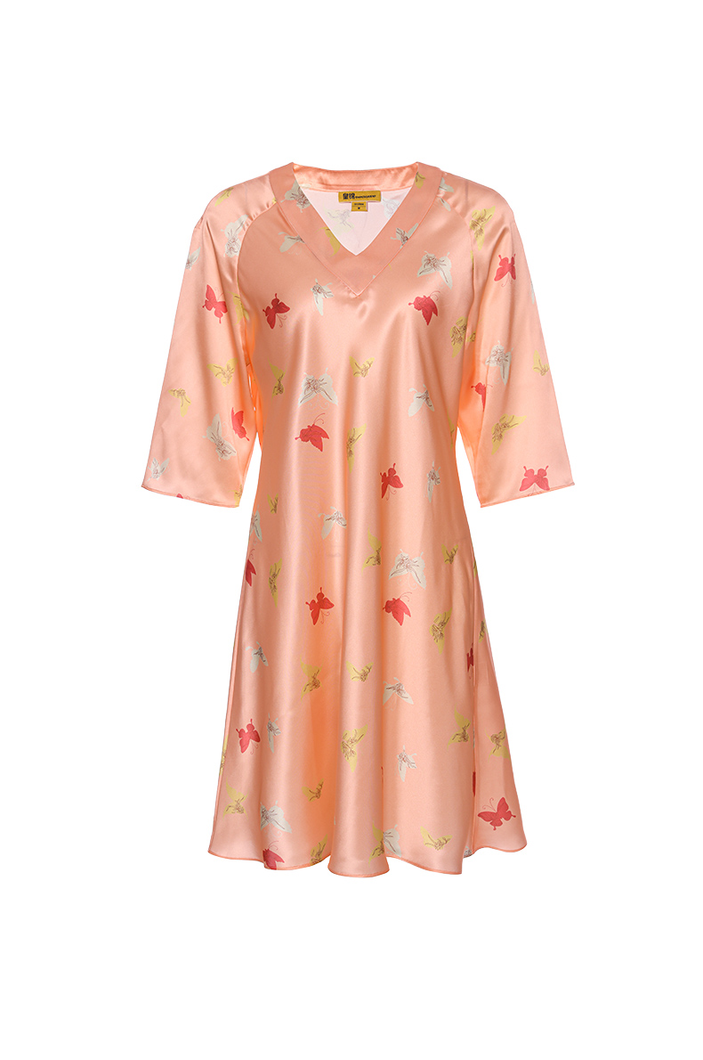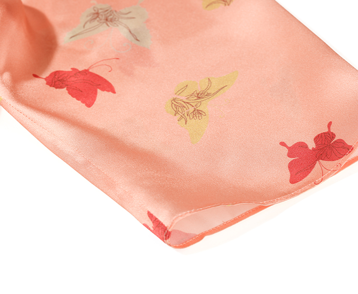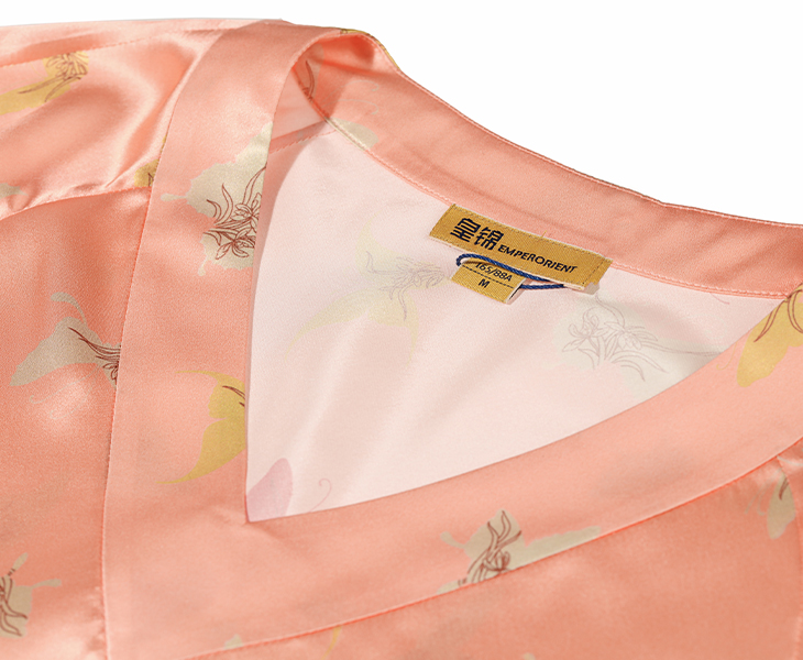 图案设计灵感出自故宫藏品清·桃红色缎绣丛兰飞蝶纹氅衣。“幽兰生前庭,含薰待清风”,兰花一直被视为君子的象征,叶态卓越多姿,花朵幽香高洁,脱俗的气质引得历代文人墨客为之倾醉,同时广泛应用于氅衣服饰、瓷器以及装饰物件之中。