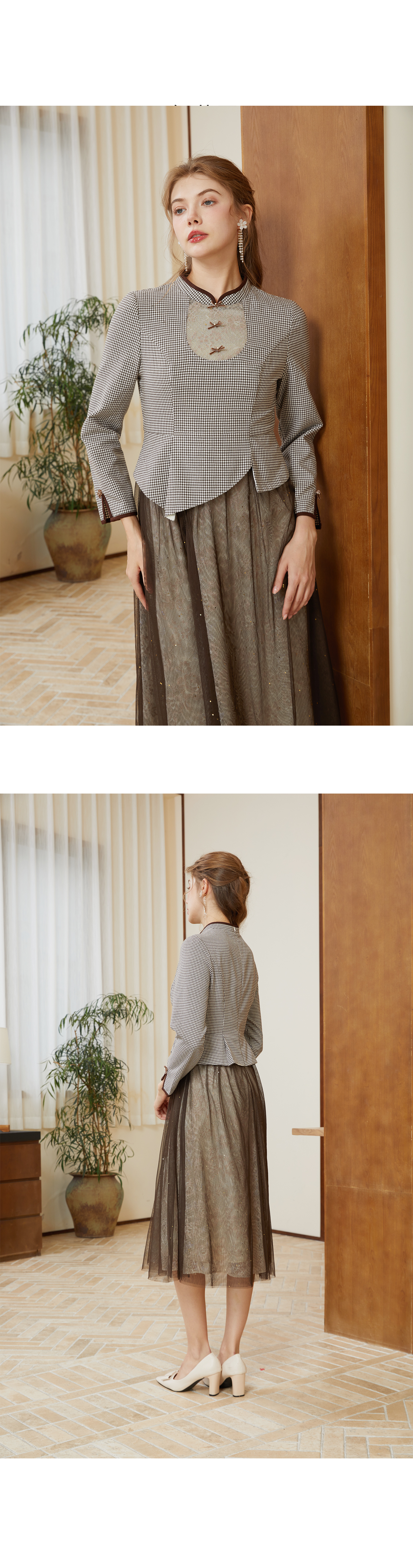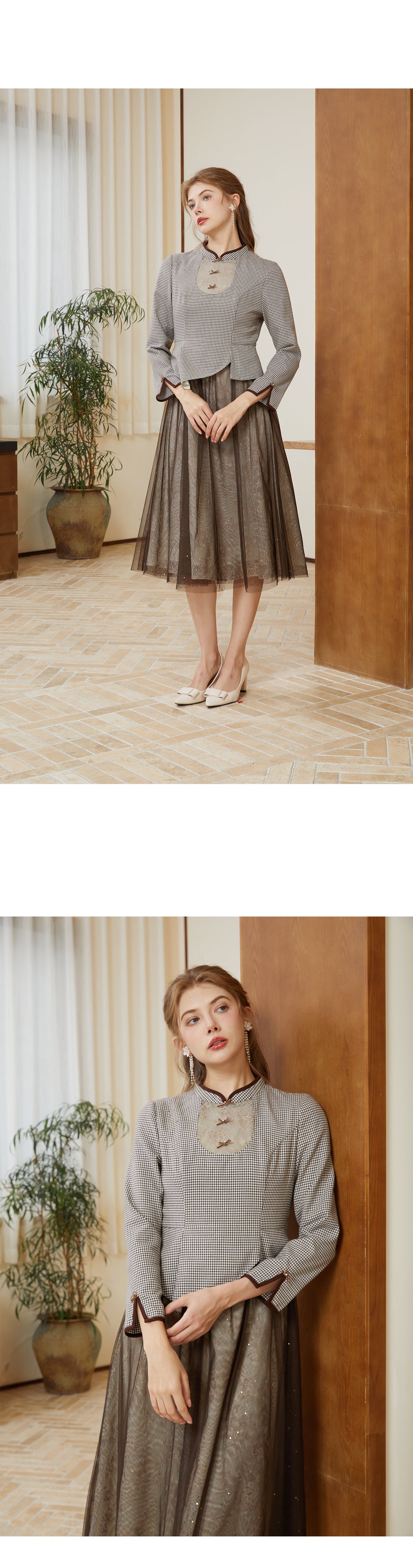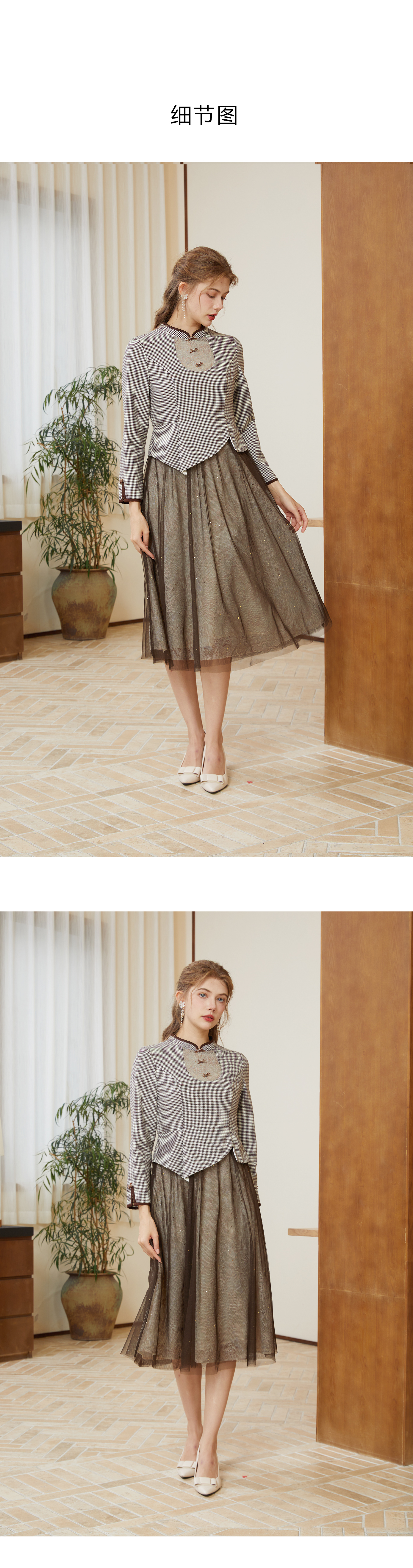 司歌国风改良旗袍连衣裙复古收腰长袖A921213X