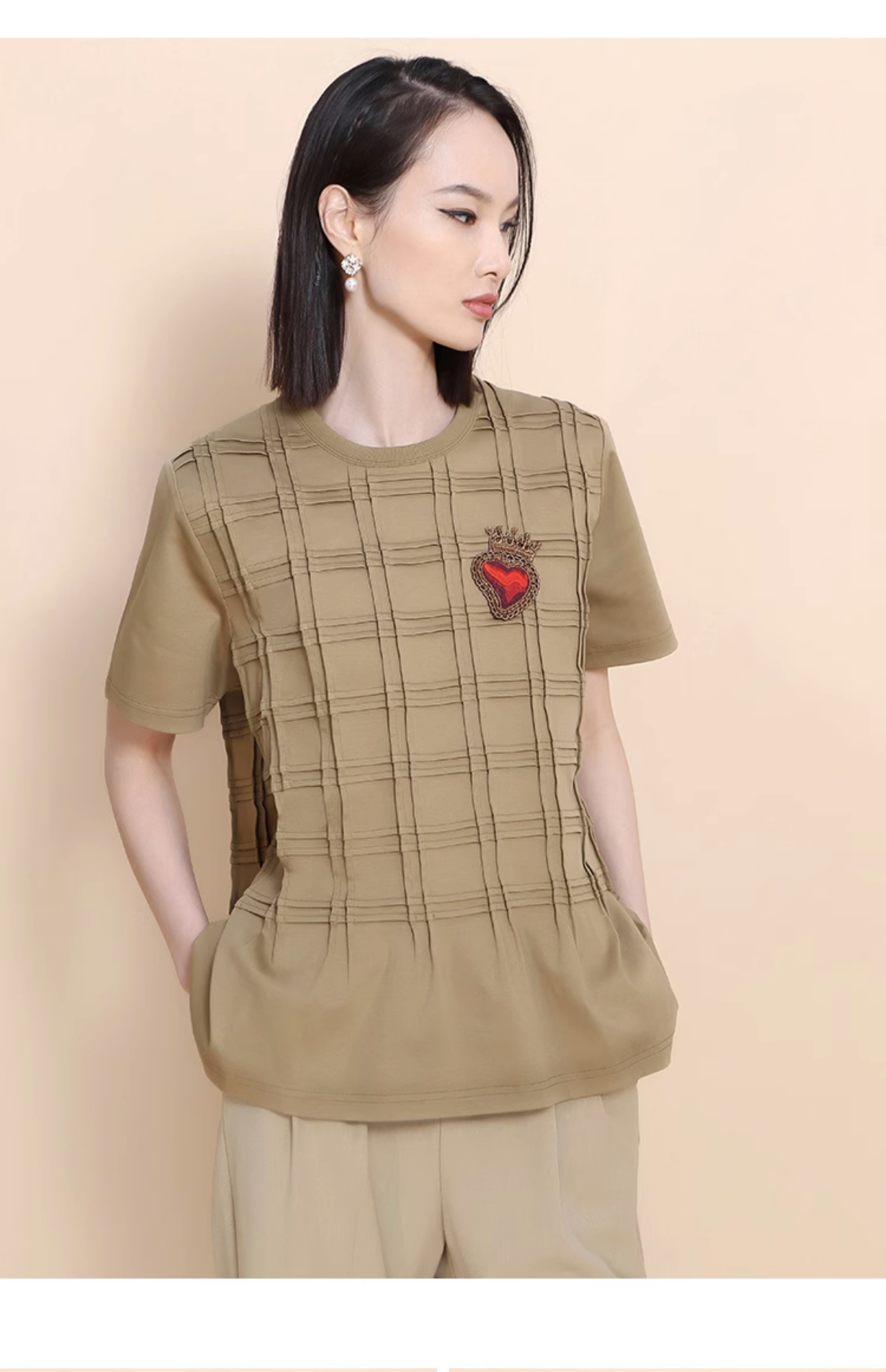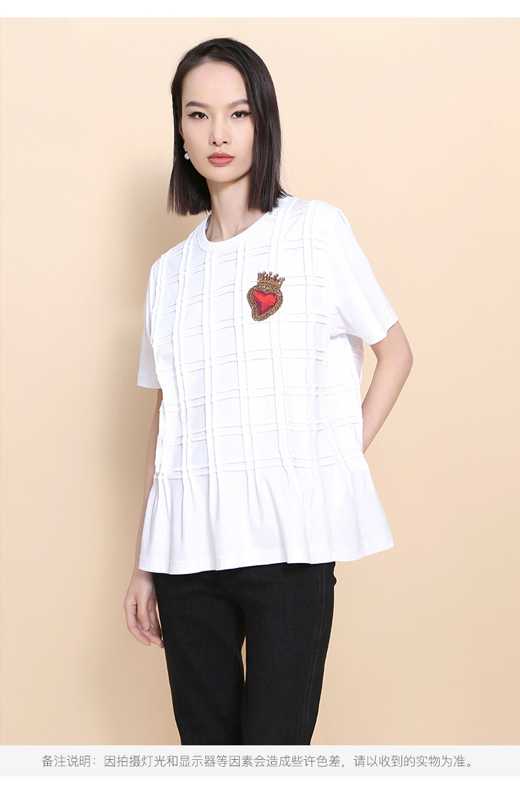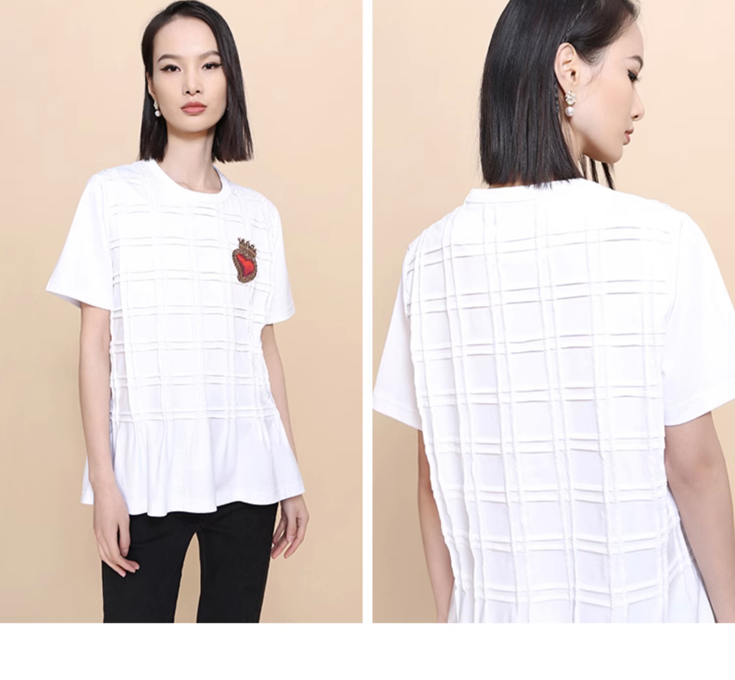 RSG郭培成衣品牌短袖女夏绗缝网格高级感棉质宽松减龄T恤上衣