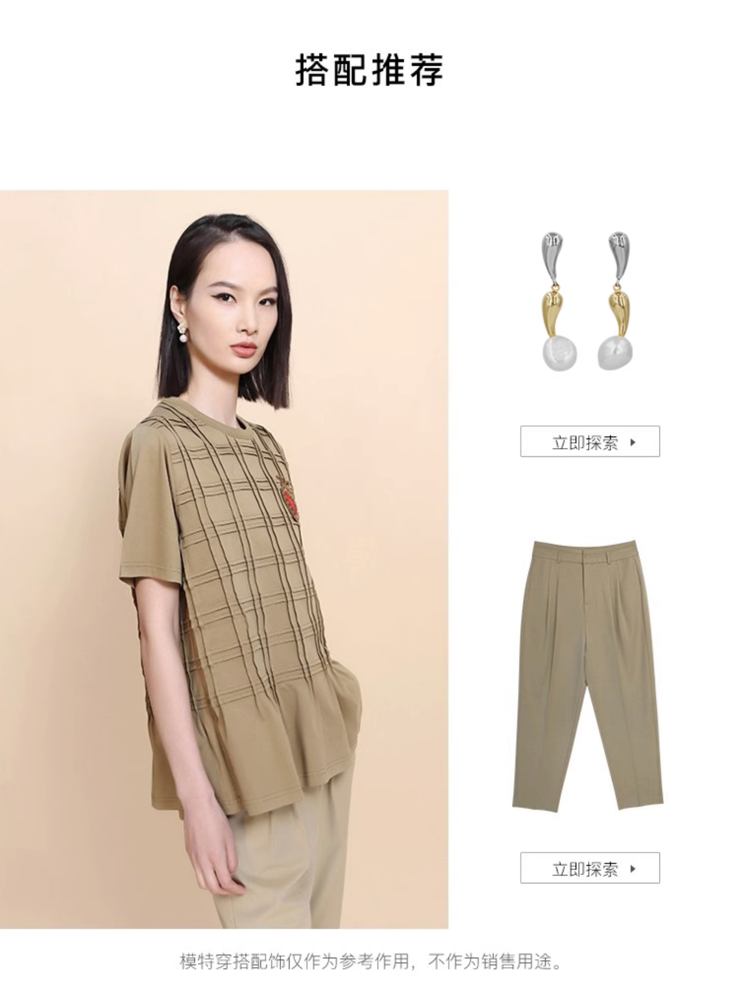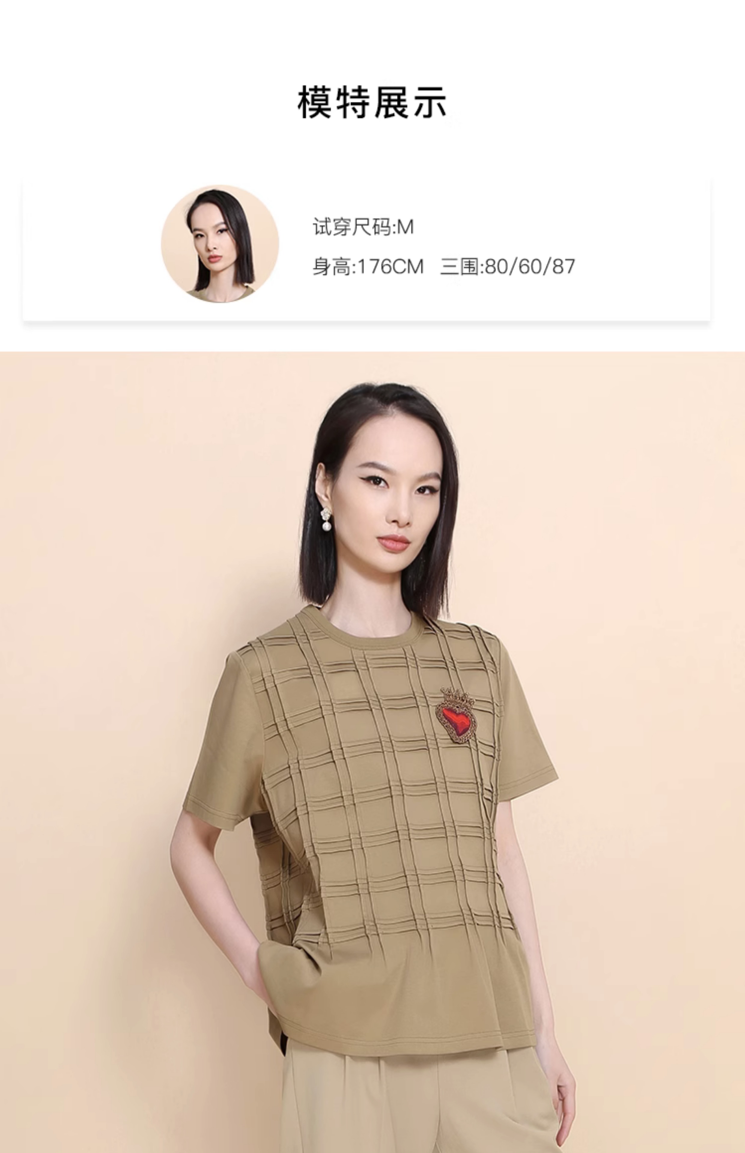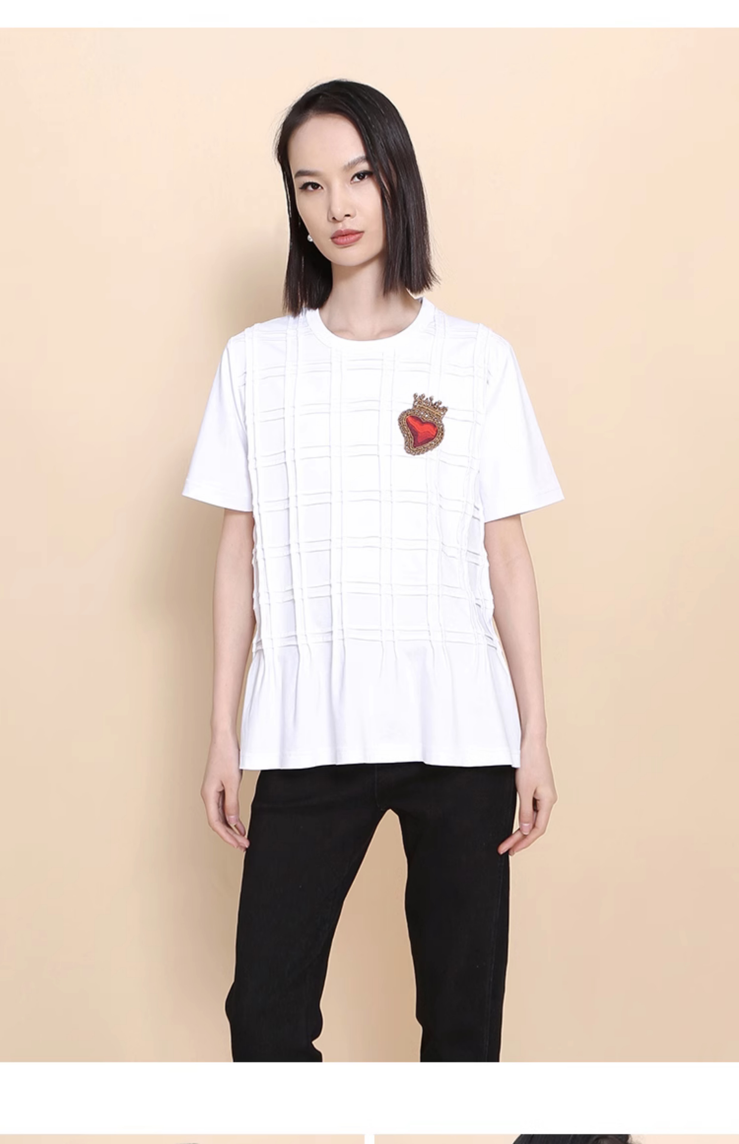 RSG郭培成衣品牌短袖女夏绗缝网格高级感棉质宽松减龄T恤上衣