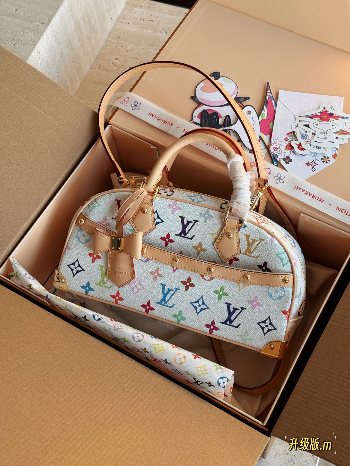 顶级免税版 VIP专柜体验 收到即官网同样 LV白三彩 村上隆联名保龄球包 一整个复古千禧年的感觉, 里面容量也很大, 手拎着好看又不老气!特别可爱