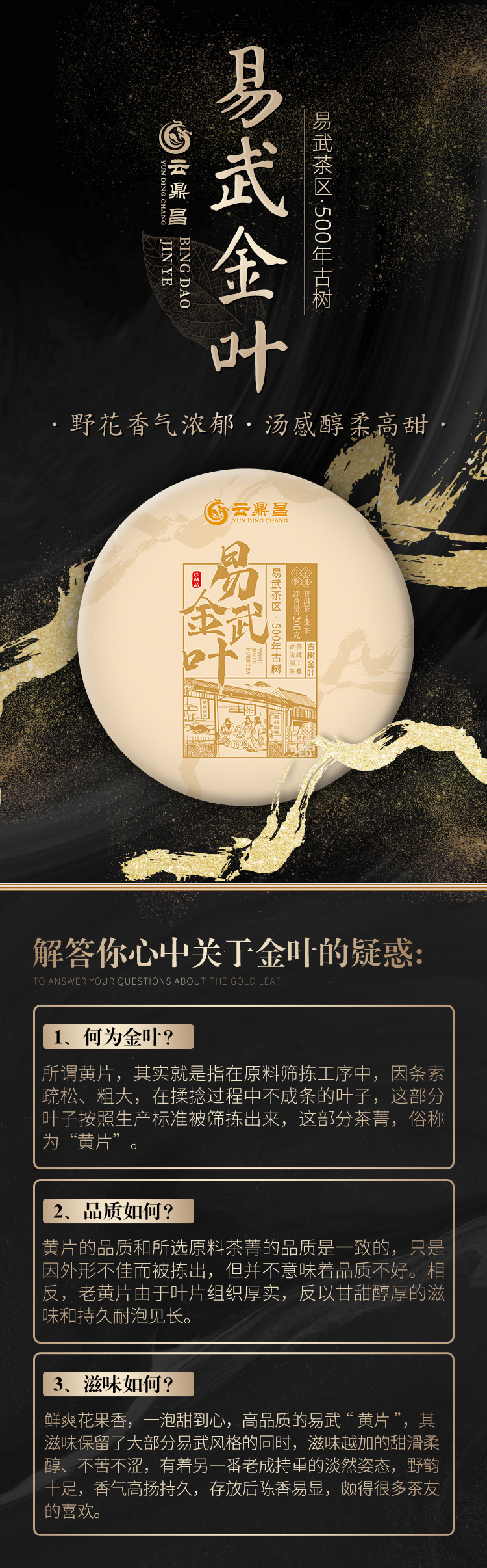 【易武金叶】2021春茶普洱茶生茶云南500古树金叶200g饼茶