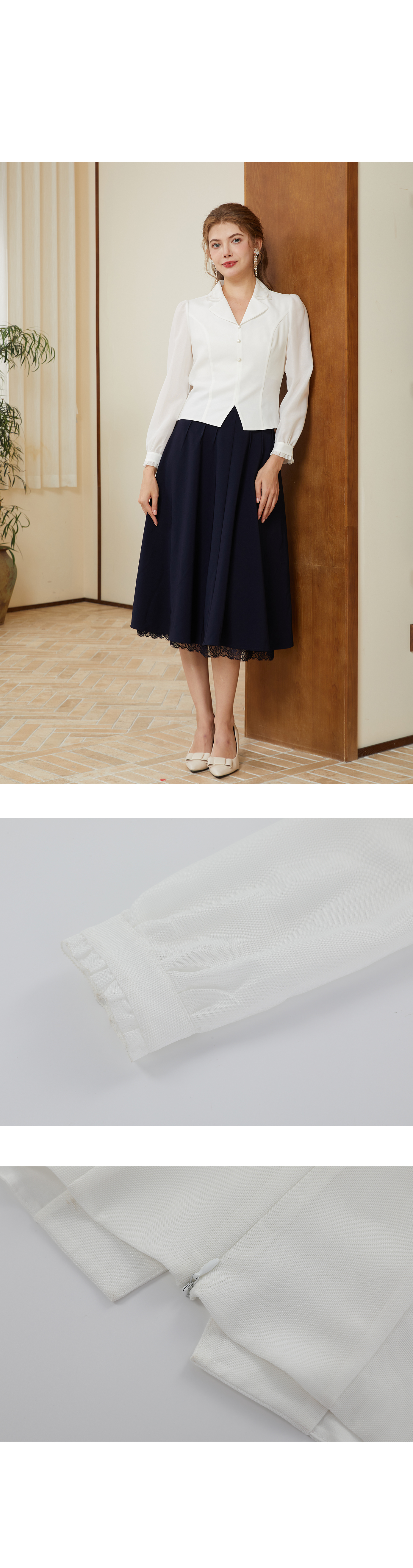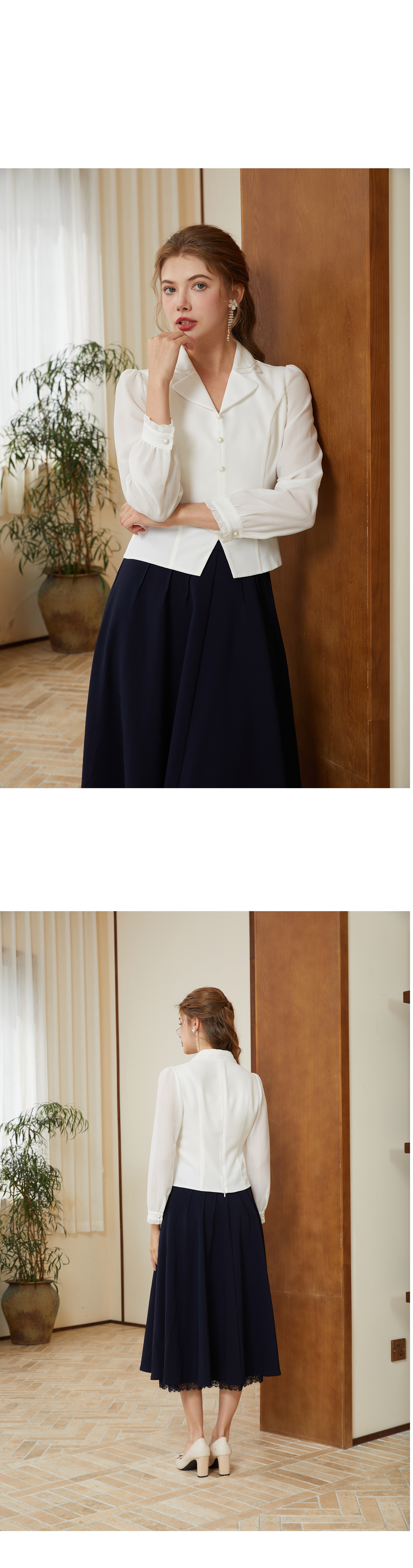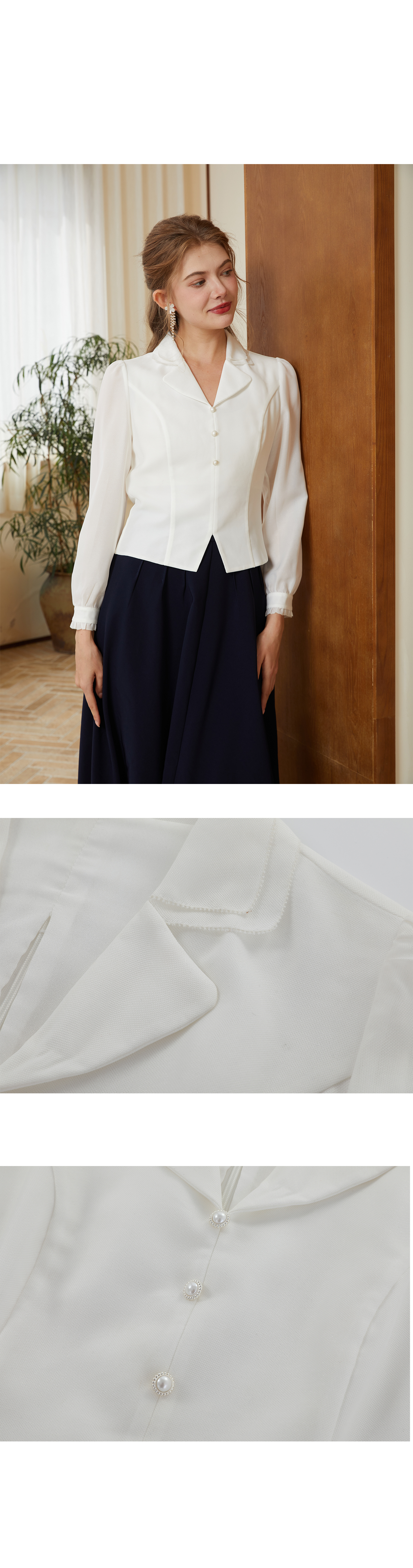 司歌翻领套头收腰长袖上衣衬衫T921245X