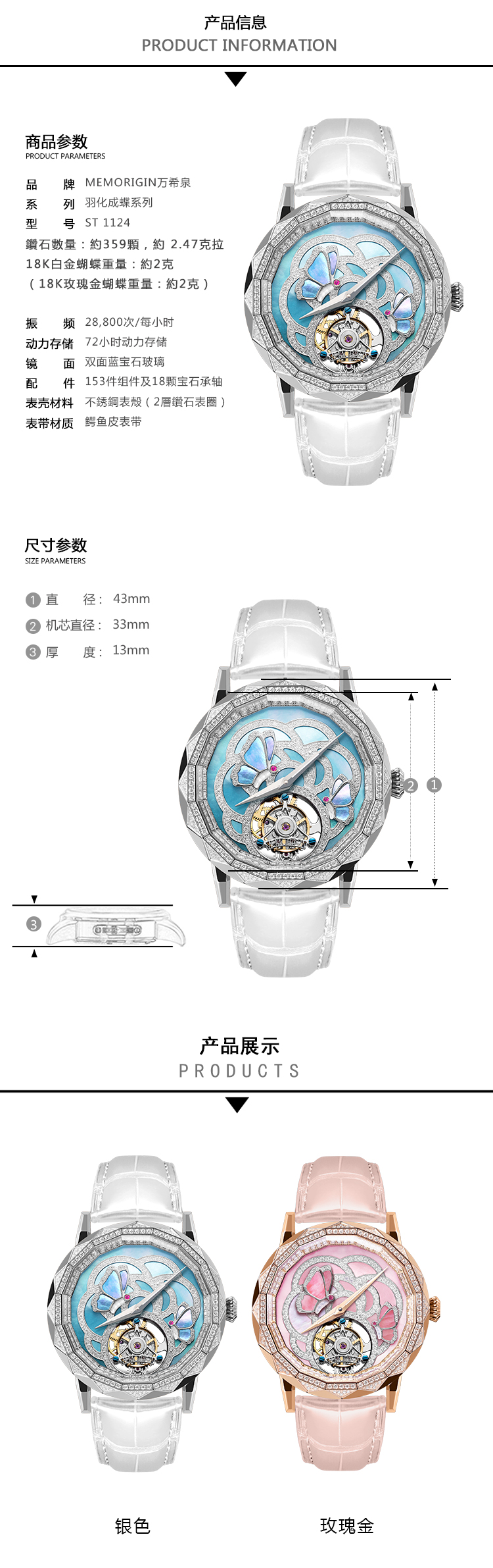 MEMORIGIN 万希泉陀飞轮腕表 羽化成蝶 机械女表 粉色