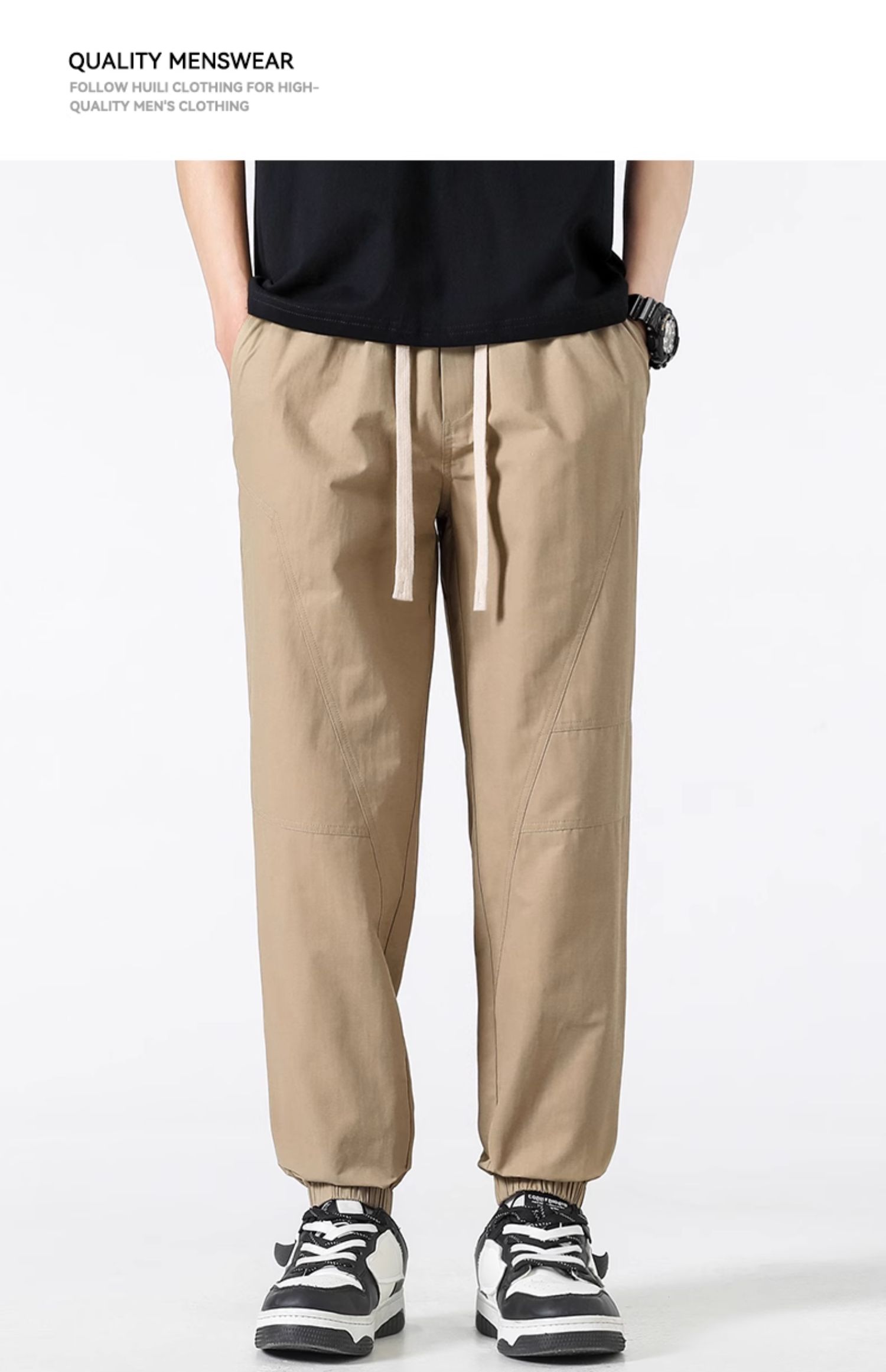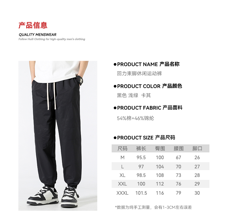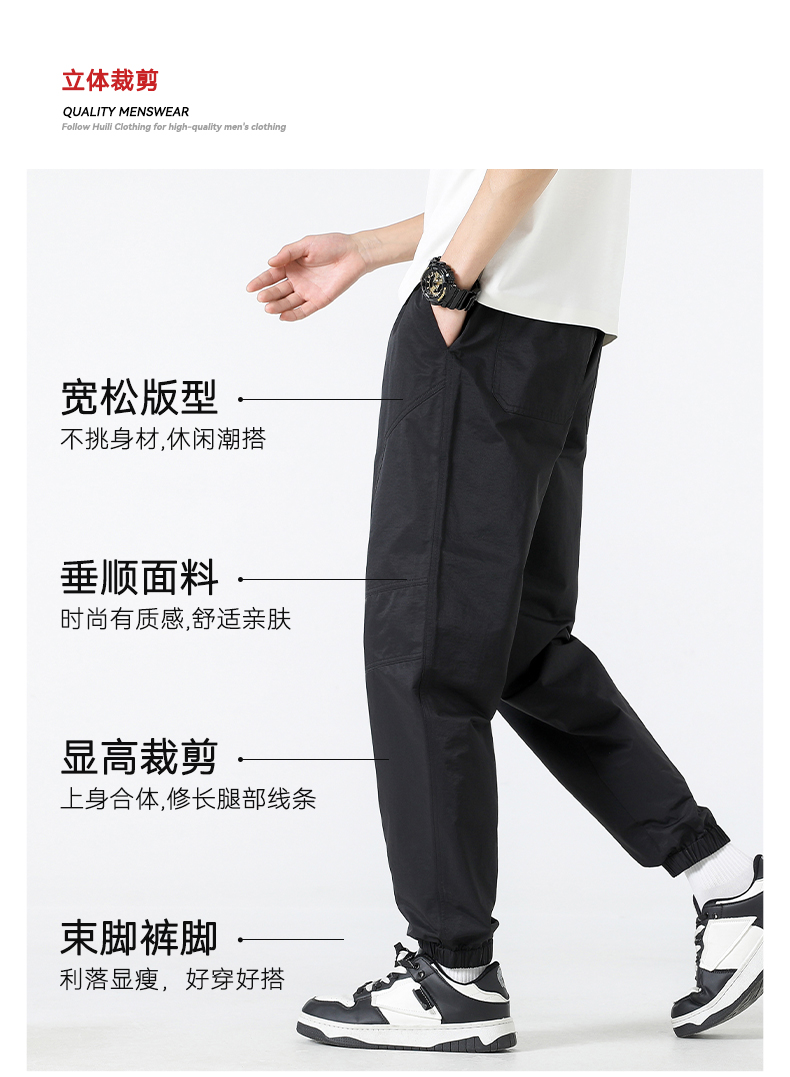 回力束脚裤子男春秋2025新款休闲宽松美式复古卡其色哈伦工装长裤