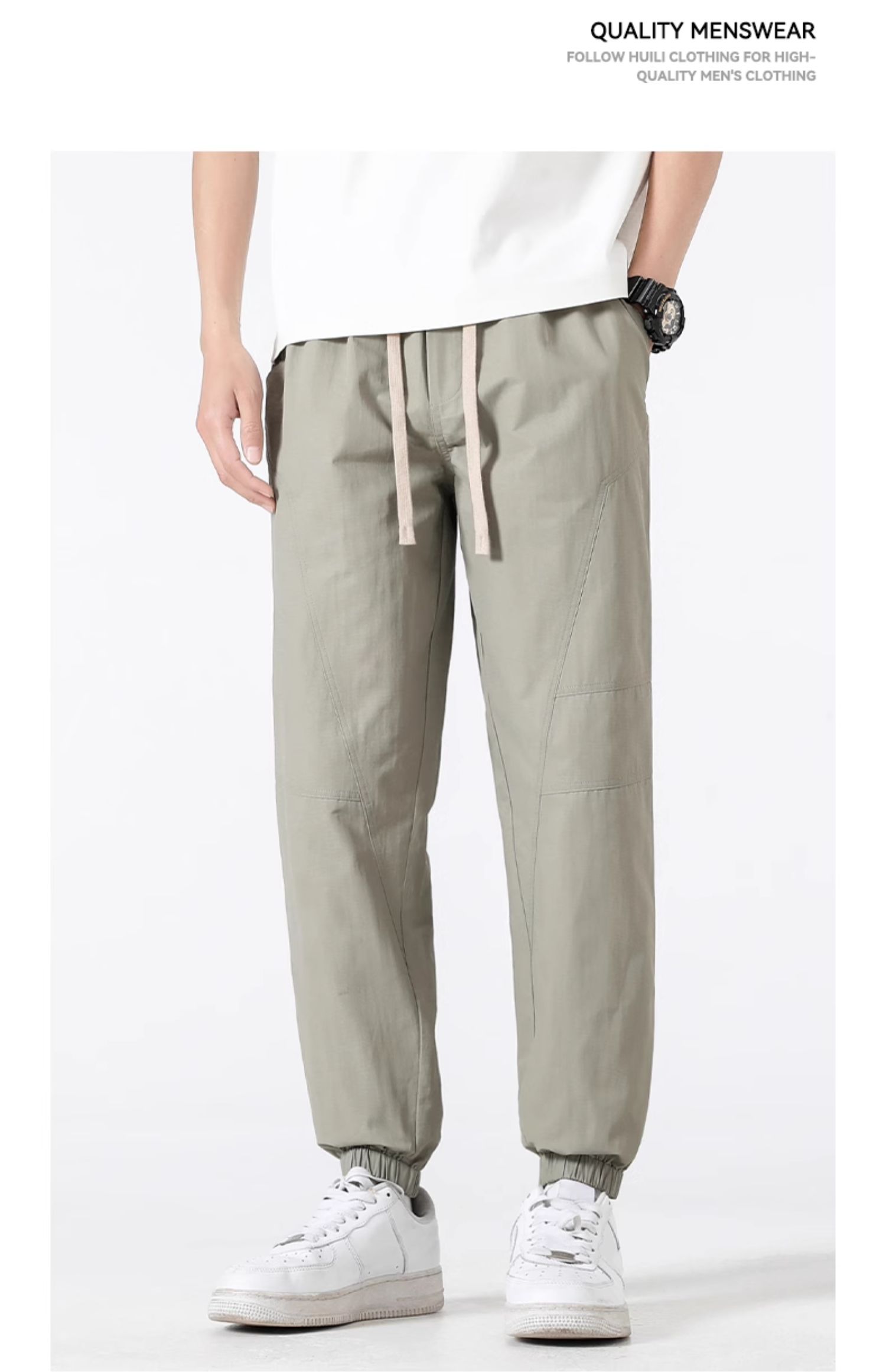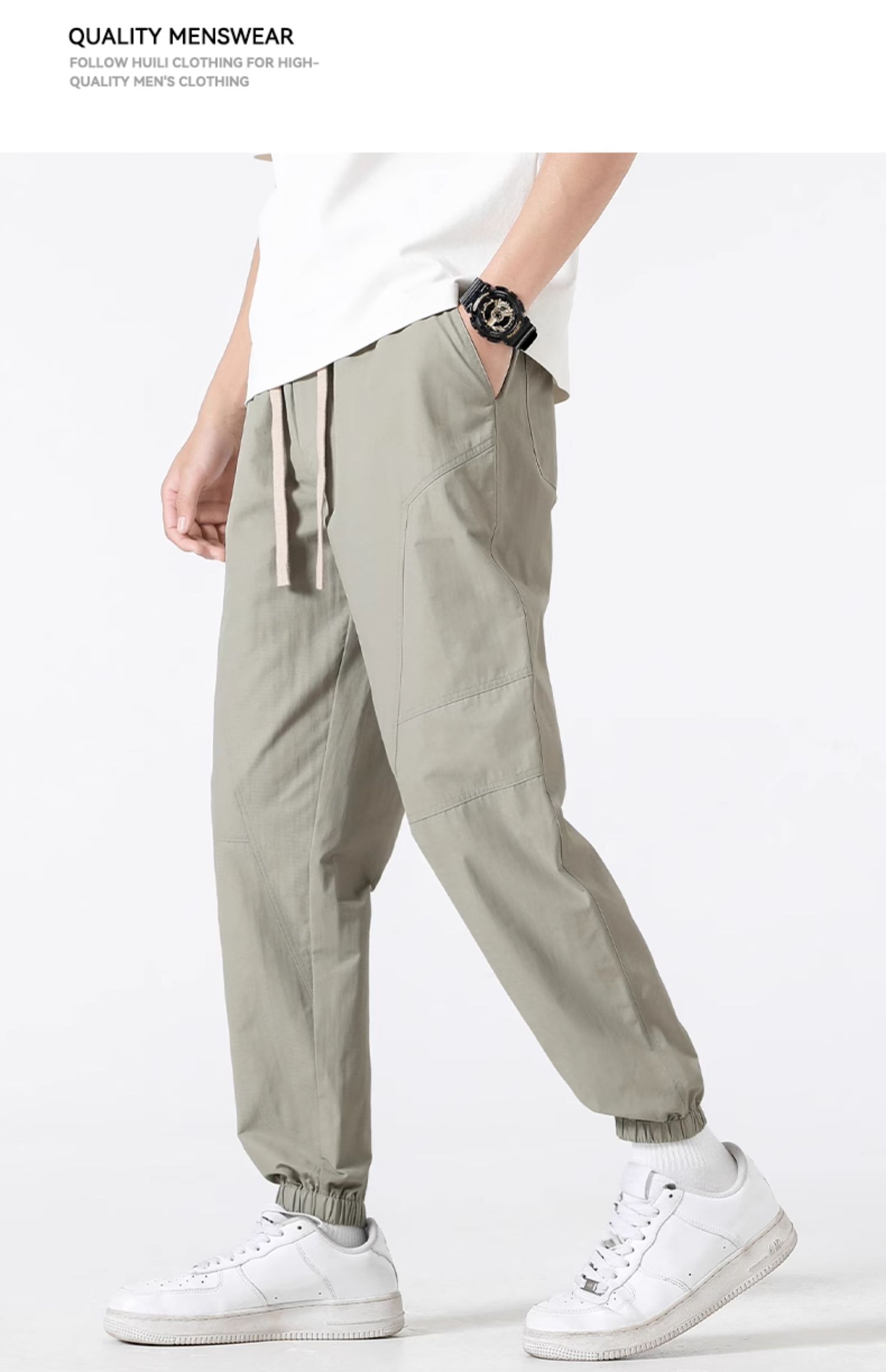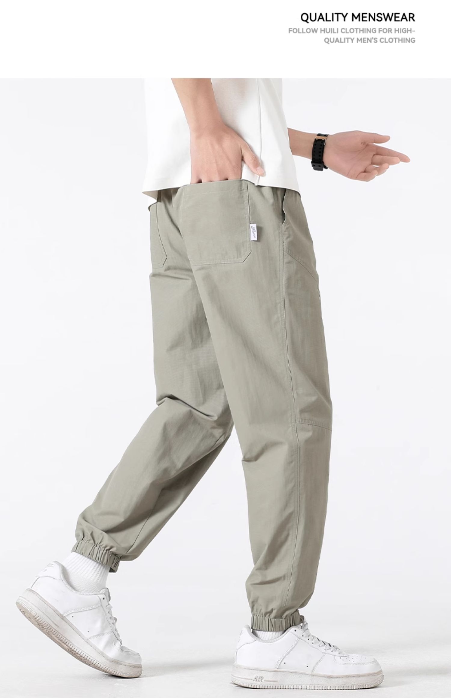 回力束脚裤子男春秋2025新款休闲宽松美式复古卡其色哈伦工装长裤